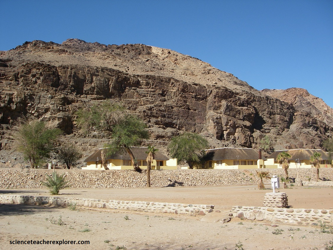 The geological origin of the hot water (600C) has been determined to be related to a deep fault system in the area that cuts through the Fish River by 900. These fault-system weak zones in the earth’s crust, which are responsible for the formation of the tectonic structures and development of the canyon, provide upward passages for the groundwater.