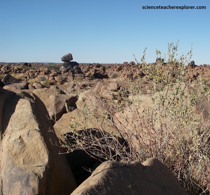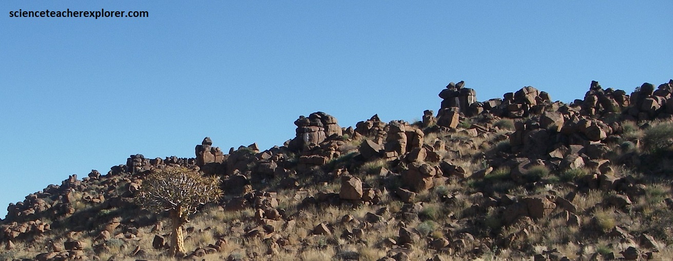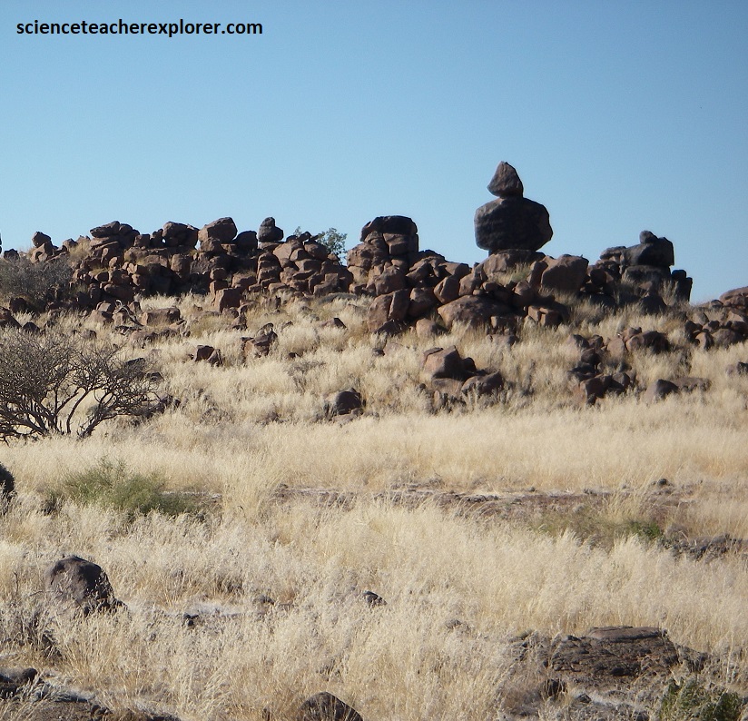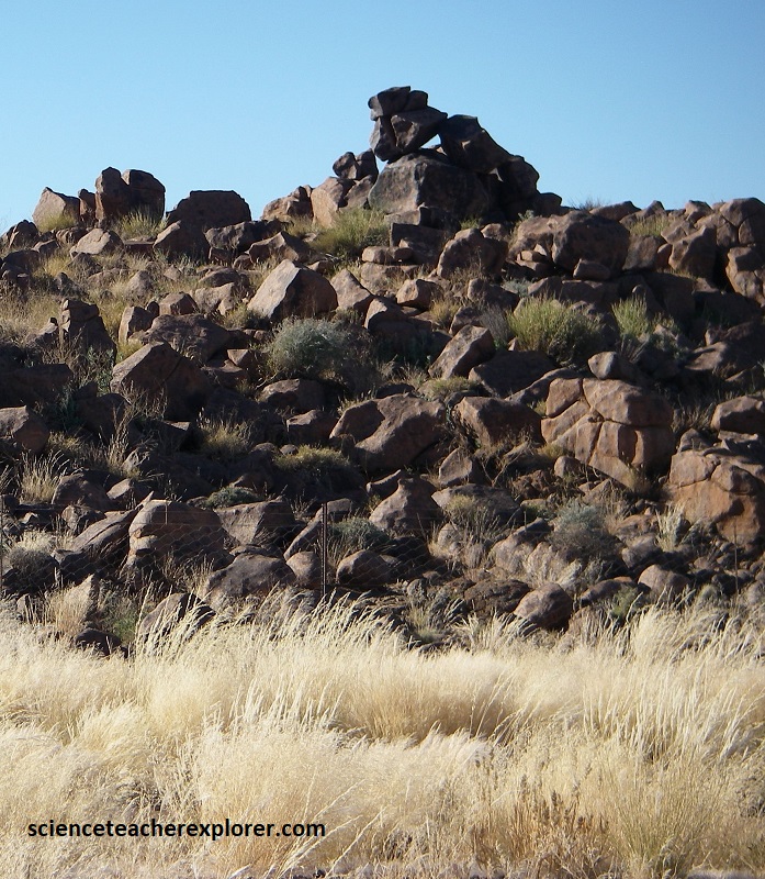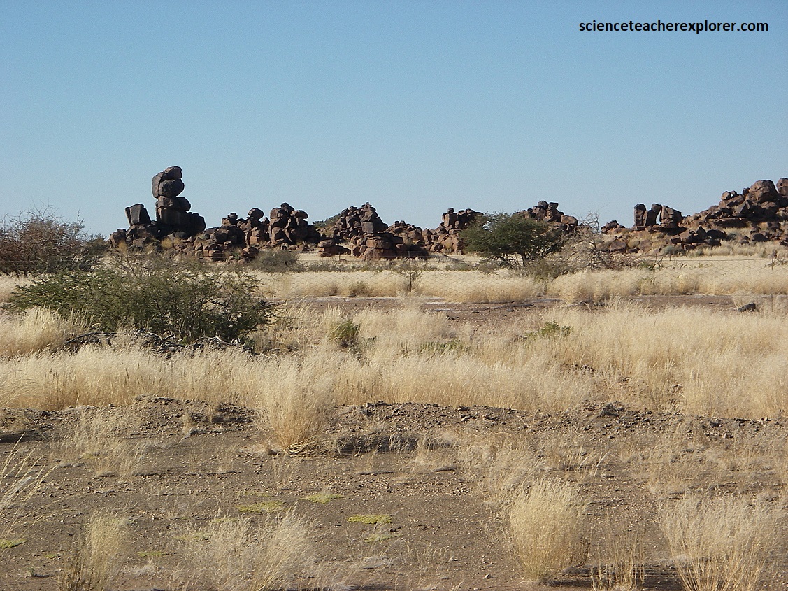 As mentioned above, the Giants Playground consists of many weathered dolerite dikes that belong to the Keetmanshoop Dolerite Complex, (related to the volcanic field see below).
