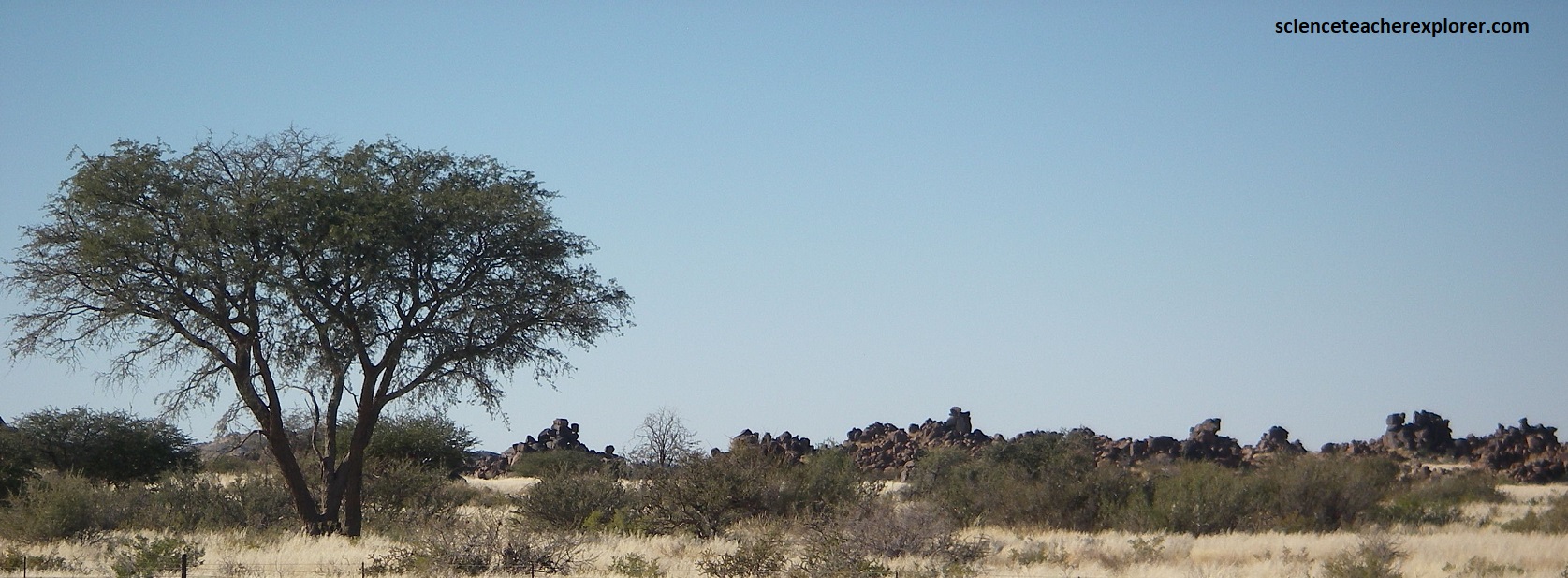 The dolerite swarm near Keetmanshoop, (which covers a surface area of 18,000 km2), penetrated into the upper parts of the earth’s crust about 180 million years ago. It’s formation is connected with the breakup of the eastern Gondwana Continent, which at thest times mainly affected the present South Africa and which started 30 million years earlier than the magmatic event in northwestern Namibia, (within the Damaraland region).