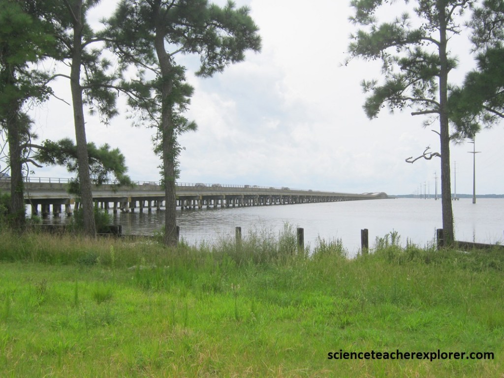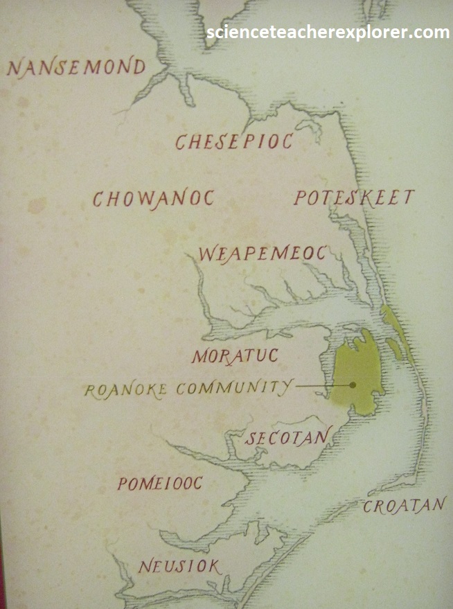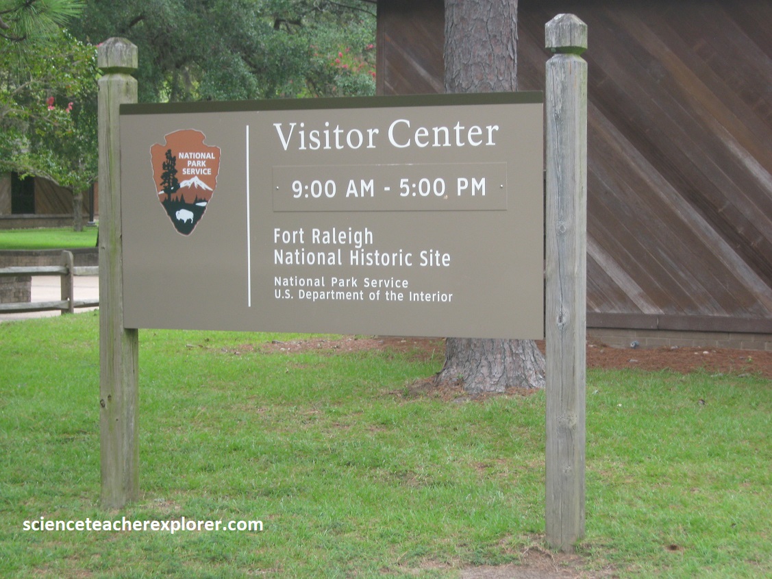 In another 8km, we turned right (west) onto US64 to visit the Fort Raleigh National Historic Site at closing time. The Algonquian-speaking people of North Carolina were the people who inhabited this area of the Outer Banks of North Carolina before European colonization. They lived on Roanoke Island, the barrier islands, and the mainland. They were the first people met by the English during the first colonization attempts at Roanoke Island. Some became important friends to the English while others became foes, pushing back against the colonization of their homeland. In 1587 English settlers attempted to colonize Roanoke Island. But by 1590 the community had inexplicably vanished. All that remained was the word CROATOAN, carved into a tree for subsequent voyagers to discover and for theorists to ponder for centuries to come. At Fort Raleigh National Historic Site, we saw the community’s reconstructed fort, which gave us a poignant resonance to the mystery of the Lost Colony. Theories about their disappearance include: relocation to other areas, assimilation into Native American tribes, death by natural causes (i.e. disease & hurricane) or violence from an outside group.