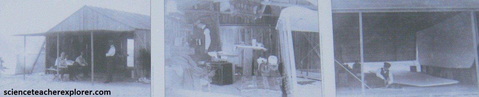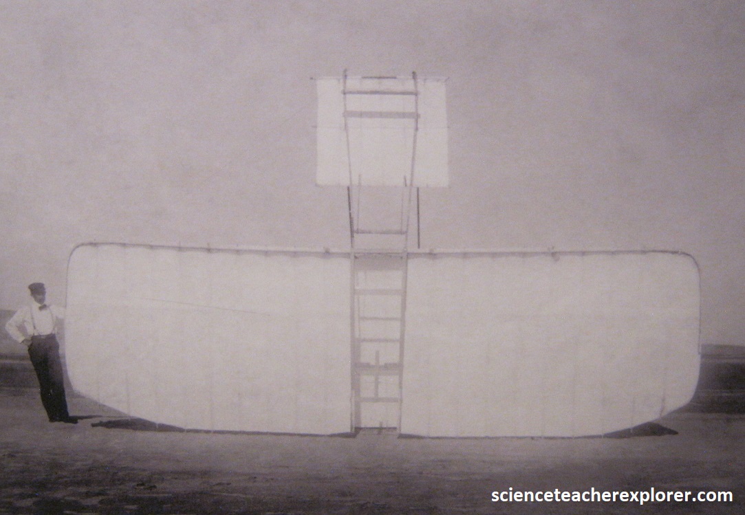 Pictured above, the brothers build the 1900 Glider using Otto Lilienthal’s data and equations. They discover there was not enough lift generated by the glider’s wings to support the weight of a pilot. Instead of giving up, Wilbur and Orville fly the glider as a kite and continue to collect data. Note that Wilbur and Orville cut, sewed, and shaped the wings of the gliders and the 1903 flyer. The brothers covered on the top of their glider wings with fabric. With the 1903 Flyer, they covered both the top and bottom surfaces of the wings. The fabric they uses was a lightweight and durable muslin, (typically used for women’s and children’s undergarments).