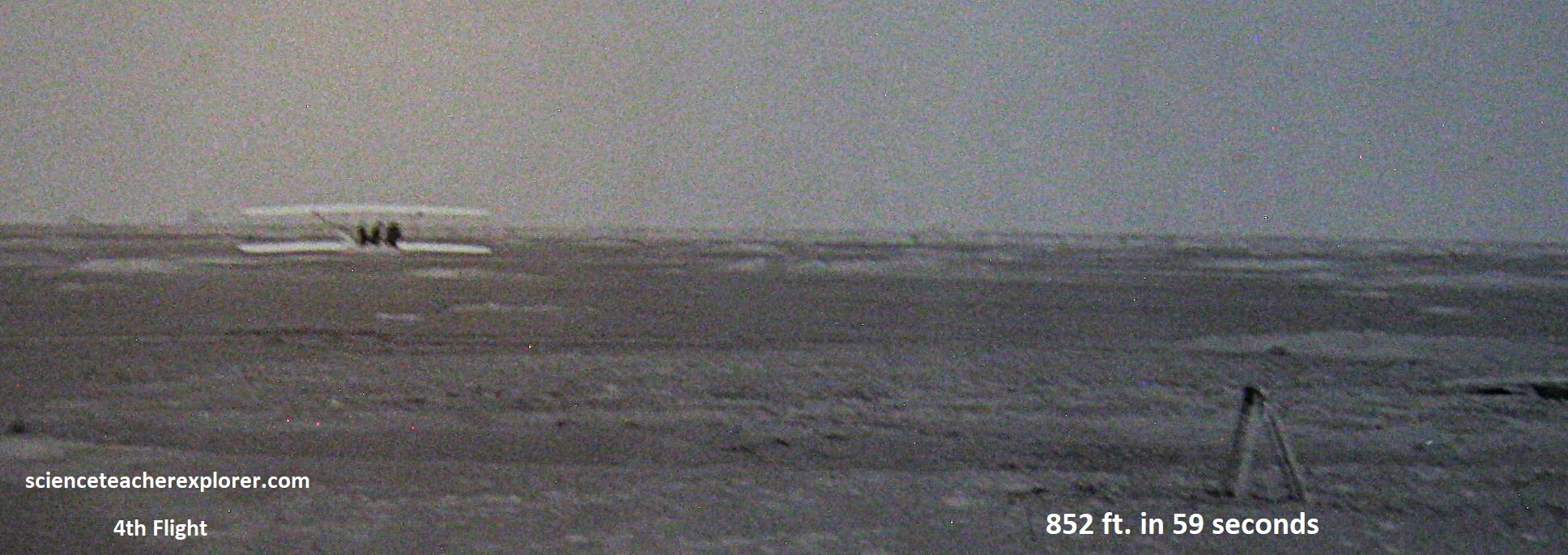 The Wright brothers made four successful sustained powered flights on the morning of December 17th, 1903. {The historical images below were taken from a public interpretive-sign on-site}. [Note: I couldn’t find a historical photo of the 2nd Flight. It probably doesn’t exist].