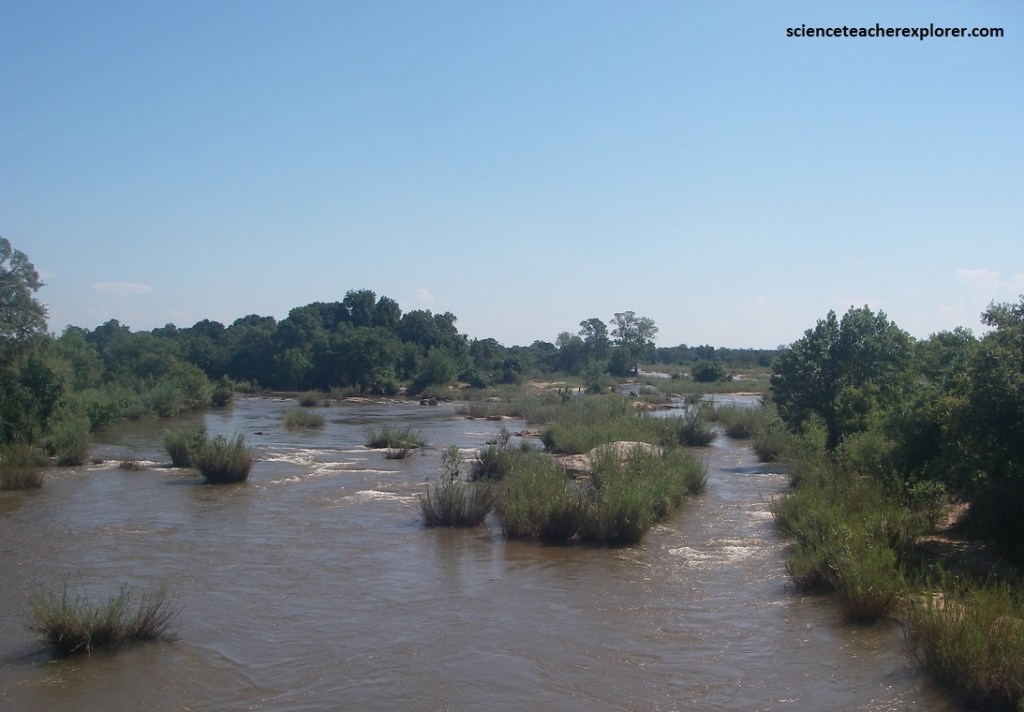 Pictured above, the Crocodile River in Mpumalanga has a catchment area of 10,446 km2. It flows through the Nelspruit industrial area, the Lowveld agricultural area and borders the southern edge of Kruger National Park.