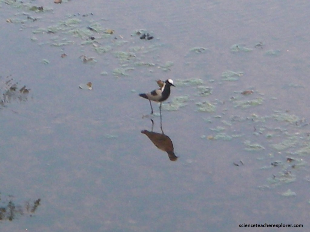 However, our first side-trip was to explore Berg-en-Dal Rest Camp, (just 10 km west of Malelane). The Berg-en-Dal camp was built on the Matjulu River within the protective ring of the Malelane mountains. There was a very attractive walk around the perimeter of the camp from the causeway past the Matjulu Dam up the river, where we viewed a number of birds. One of the birds we saw was the Blacksmith Plover, (pictured above). The Blacksmith Plover Vanellus armatus is of the Lapwing spcies. Blacksmith Plovers are very boldly patterned in black, grey and white, possibly warning colors to predators. The portions of the bird’s body bare to plumage average a black coloration for the bill, and either a black or white-grey dappling on the legs.