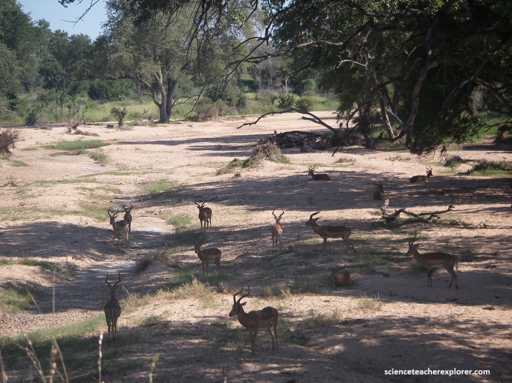 Pictured above, the river lines are the most fertile, productive, and wettest parts of Kruger, and as such contain incredibly important habitats. Our group could always see a great diversity of wildlife: riparian woodlands grow along the rivers, almost forest-like in places.
