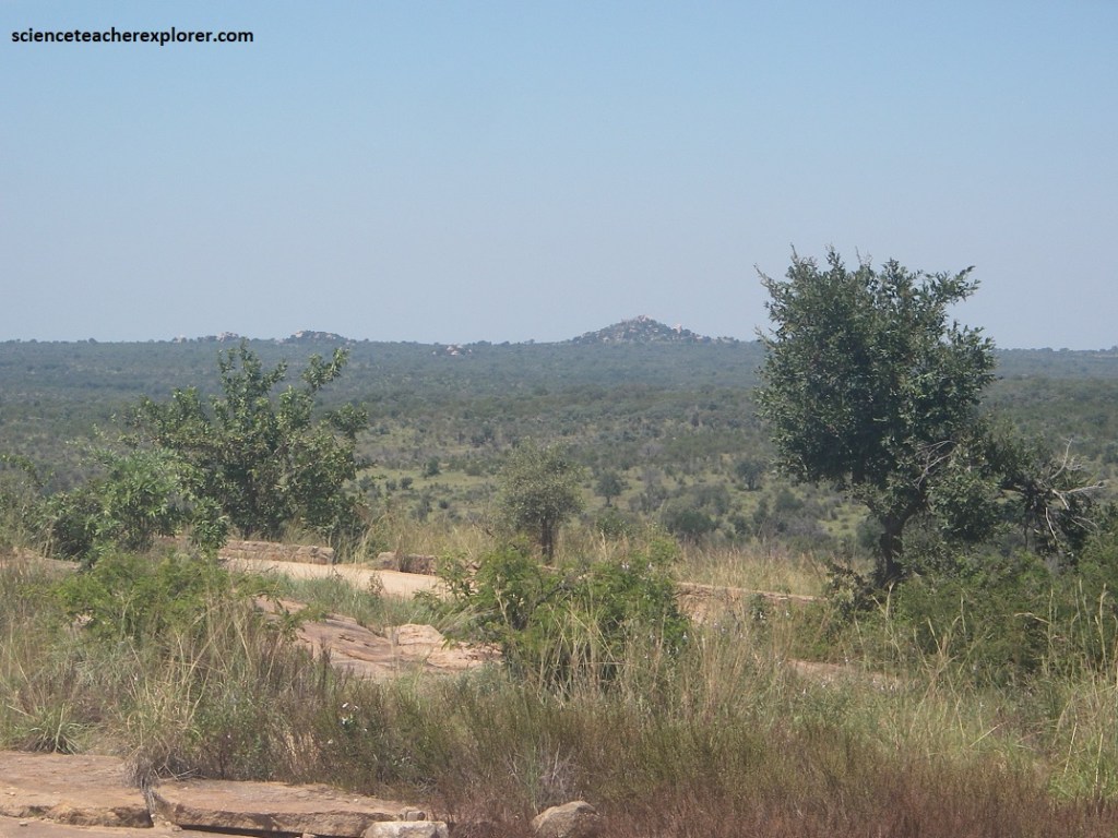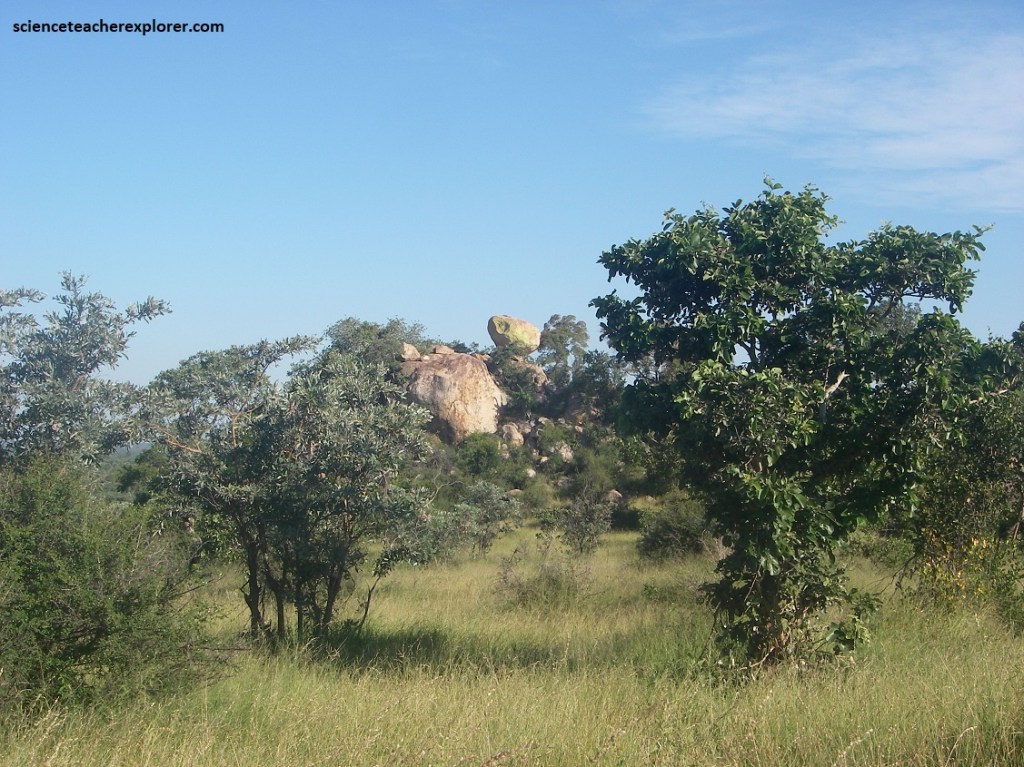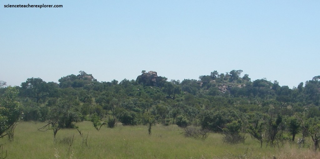 The southern part of Kruger is quite unlike the other areas of Kruger National Park in that it is very “hilly”. Intrusive granite is the main type of rock and it shows the effects of exfoliation, (the splitting of rocks into a series of concentric shells), which has produced a landscape of hills and valley covered by tall, but sparse, woodland.