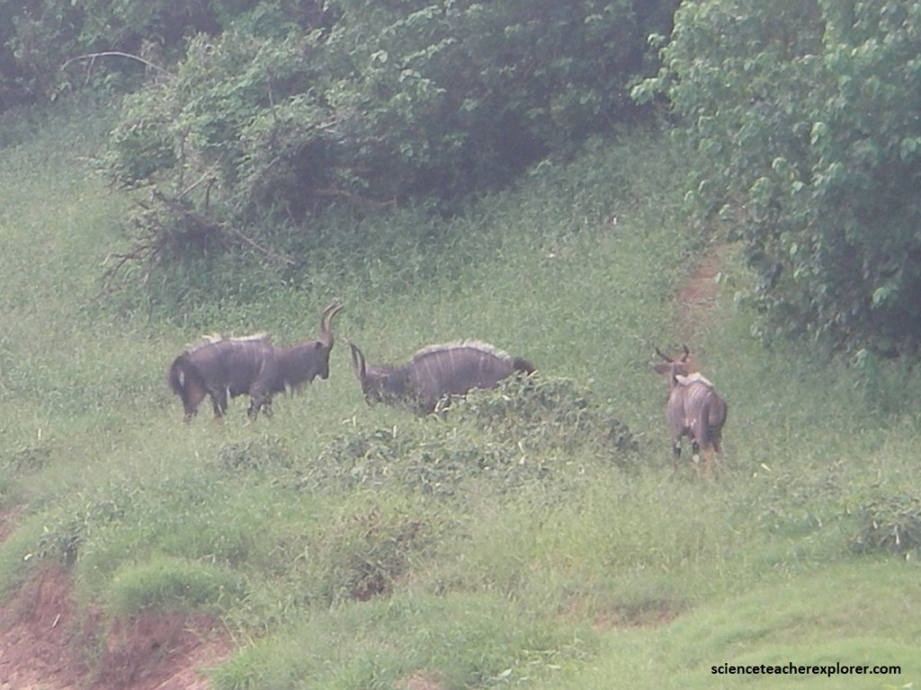 Large trees, such as sycamore figs that can reach up to 21 meters, provide nesting sites for birds and food for a huge variety of animals, such as the Nyala, and insects. Pictured above, the Nyala Tragelaphus angassi have long hair hanging from their bellies, white-tipped mane and yellow-brown “socks”. The males have horns and females are reddish in color and smaller. Additionally, the males are dark brown with a white mark between the eyes.