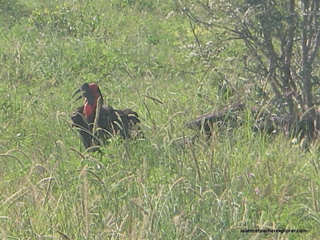 Pictured above, we were lucky to see these Southern Ground-Hornbills Bucorvus leadbeateri along the H7. It was a very large turkey like black bird with a very large bill. The bare face and throat skin was red. There was a small flock of them that seemed to be foraging on the ground.