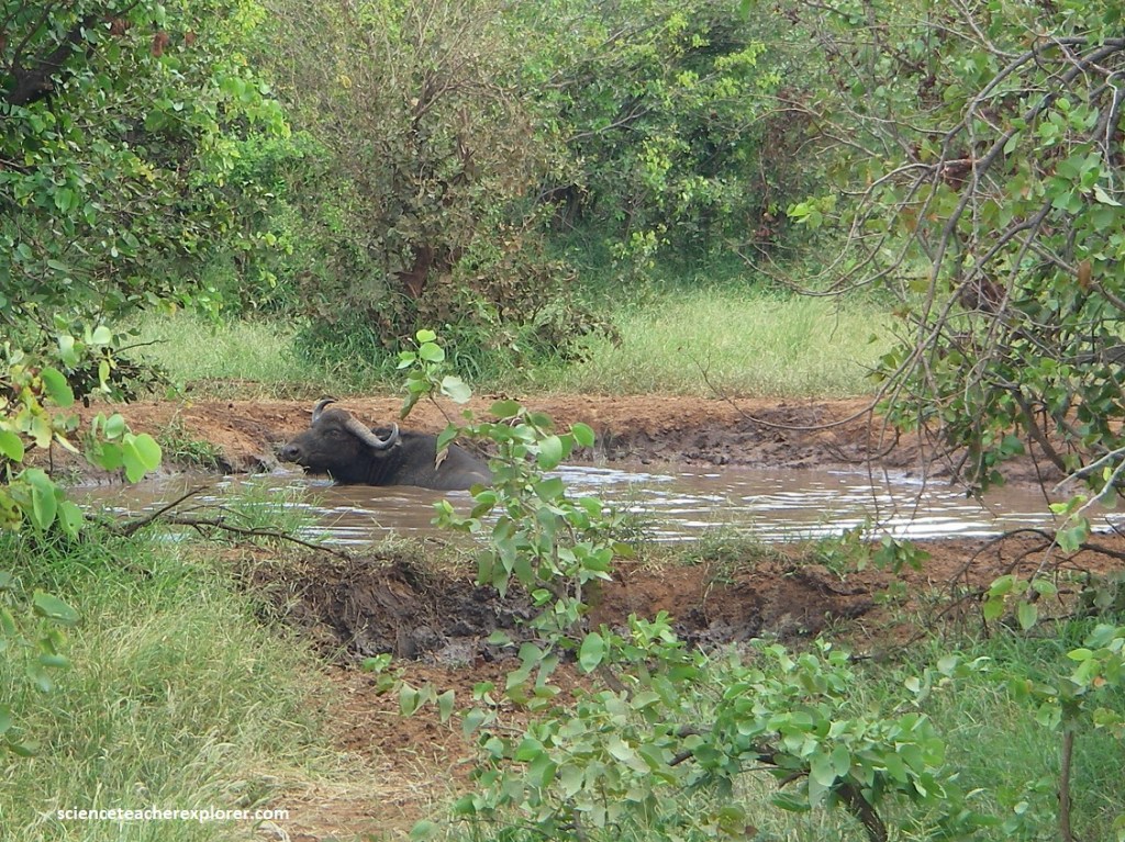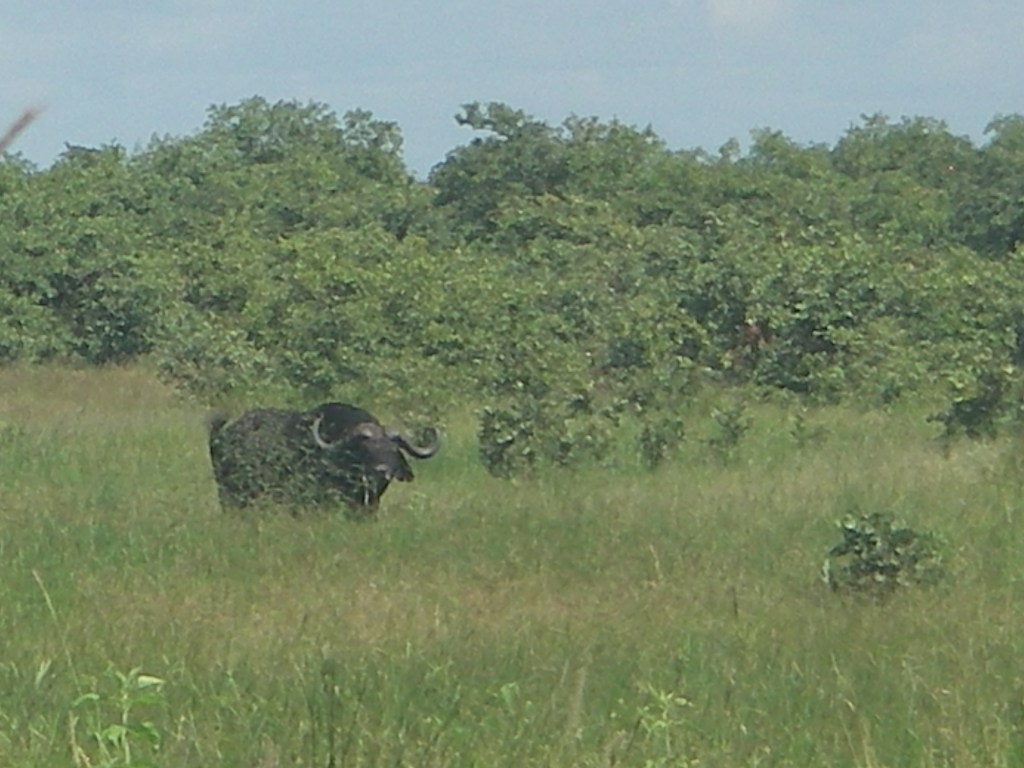 Pictured above, the African Water-Buffalo Syncerus caffer is a large cattle-like animal that has a reputation for tremendous strength and determination. This one was grazing in tall grass. They are usually dependent on water and I suspected that a water-hole was nearby.