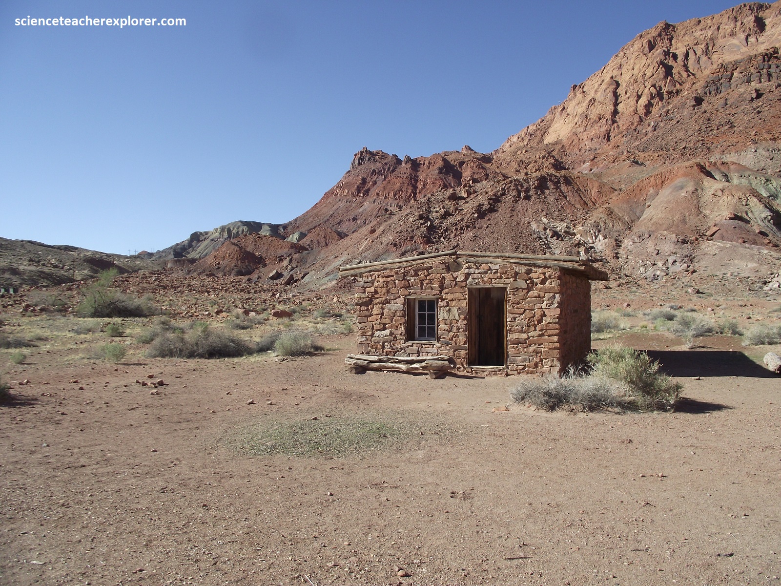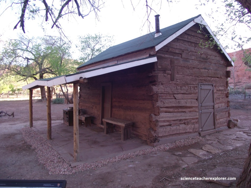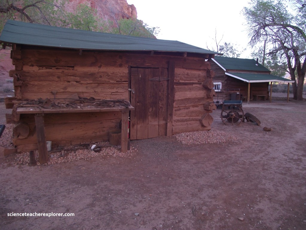 Warren Johnson, who took over operations after the Lees, built this cabin for his second wife Samantha and their young children in 1886. Samantha lived here only a year until the large family home was completed next door. When she moved out, farm-hands moved in. In 1897, the new ferryman James Emett converted the cabin into a school for the children of Lee’s Ferry. Using salvaged parts from a steamboat abandoned along the shore of the Colorado River, Emett extended the walls and improved the floor and roof. Throughout the years, the cabin housed ranch workers and travelers, then reprised its role as a schoolhouse in the 1920s.