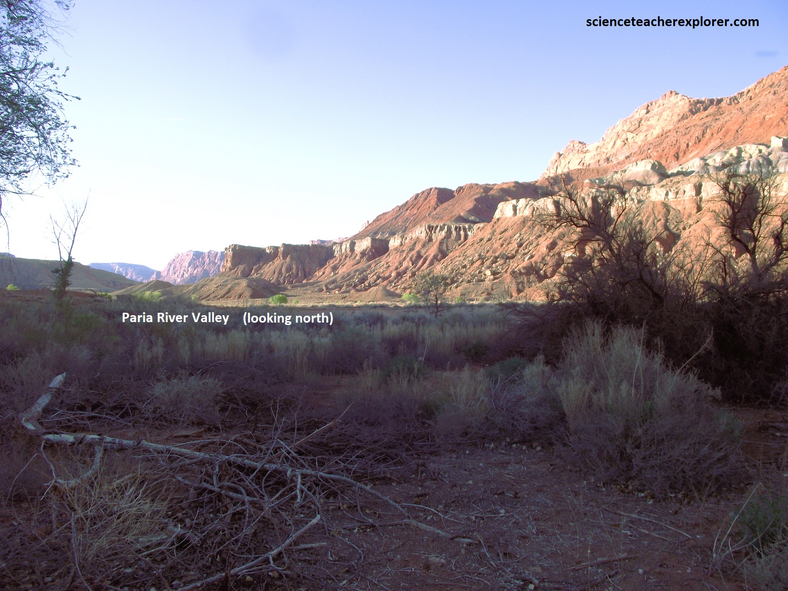 Pictured above, the Paria River drainage is near the middle of the Colorado Plateau, and has at least its share of unique geologic wonders. The Paria begins at Bryce Canyon National Park and Table Cliff Plateau, and ends at Lee’s Ferry on the Colorado River. In between are canyons like Bull Valley Gorge, Round Valley Draw, and Buckskin Gulch, and the Lower Paria River Gorge, {all are places I’ve explored and trekked and are different web-pages I’ve included on this web-site}. Perhaps the most interesting geologic feature of all is “The Cockscomb”.