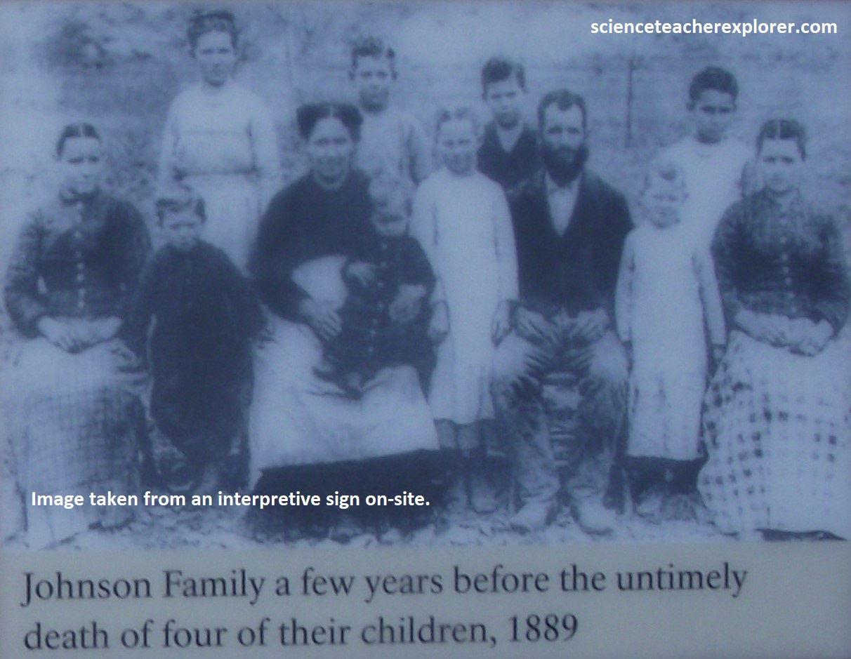 As travelers arrived and departed from the Lonely Dell, they brought more than goods and company. In close quarters with poor sanitation, unrecognized disease spread easily. After giving hospitality to travelers, Warren and Permelia Johnson lost four children with weeks to a mysterious illness, now recognized as diphtheria. Sickness, childbirth, and exposure to the elements claimed many lives in the pioneer movement throughout the area. Descendants of 20 pioneers buried here visit and tend the graves.