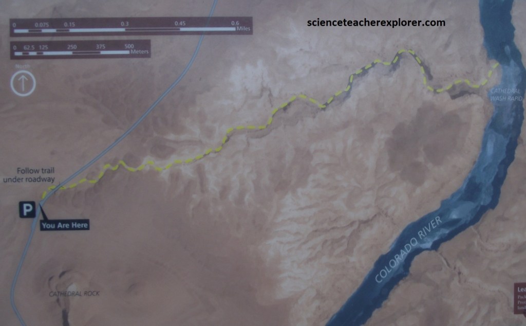 Imaged above, a trek down the dry Cathedral Gulch had no technical chalenges, but scrambling and carful decision-making were needed to choose safe routes over ledges and dropoffs. The small canyon took me deeper and deeper through the Kaibab Limestone and Toroweap Formations until ending at the river, where canyon debris creates the Cathedral Wash Rapid.
