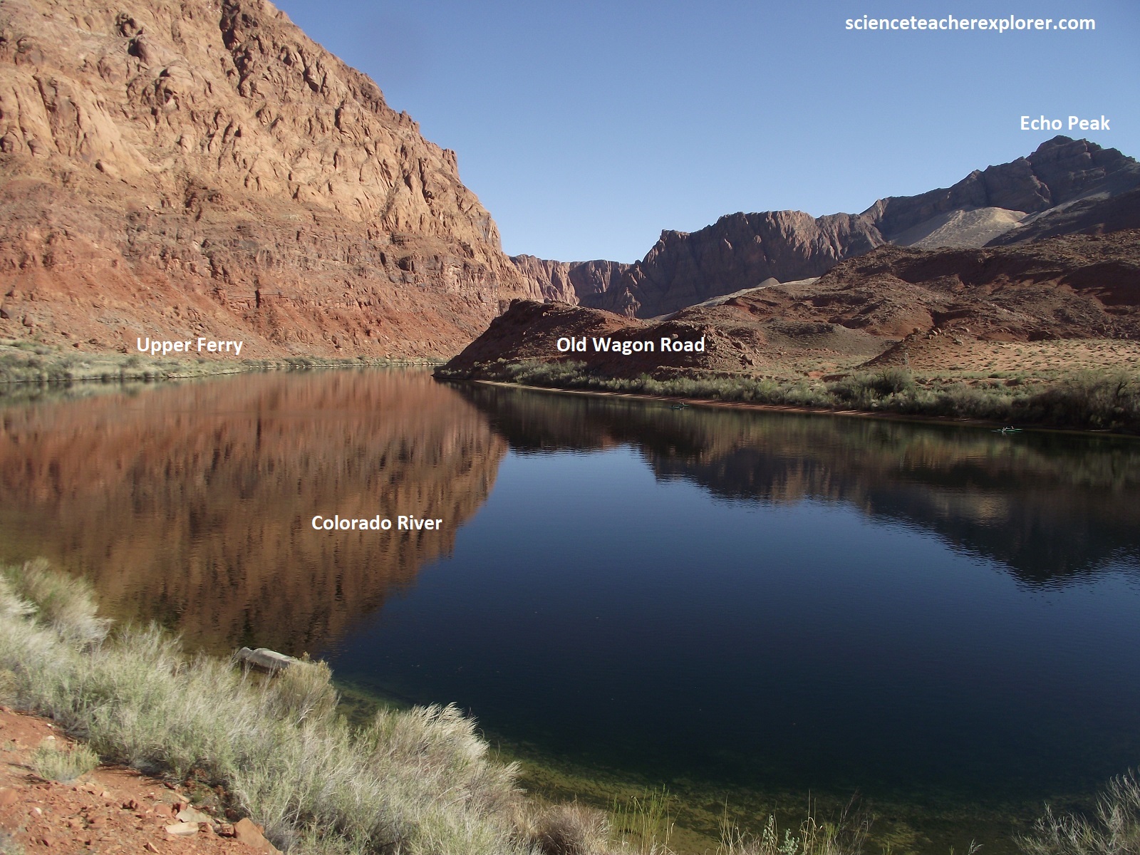 The Lee’s Ferry area includes about 700 square kilometers of sparsely populated semi-arid canyon and plateau country in Coconino County, Arizona. The historic crossing of the Colorado River at Lee’s Ferry is situated in the geographic center of the area above the confluence of the Paria and Colorado Rivers. At Lee’s Ferry the altitude is about 3,100 feet (1,033m); the surrounding high plateaus are form 1,500-2,330 m above sea level.