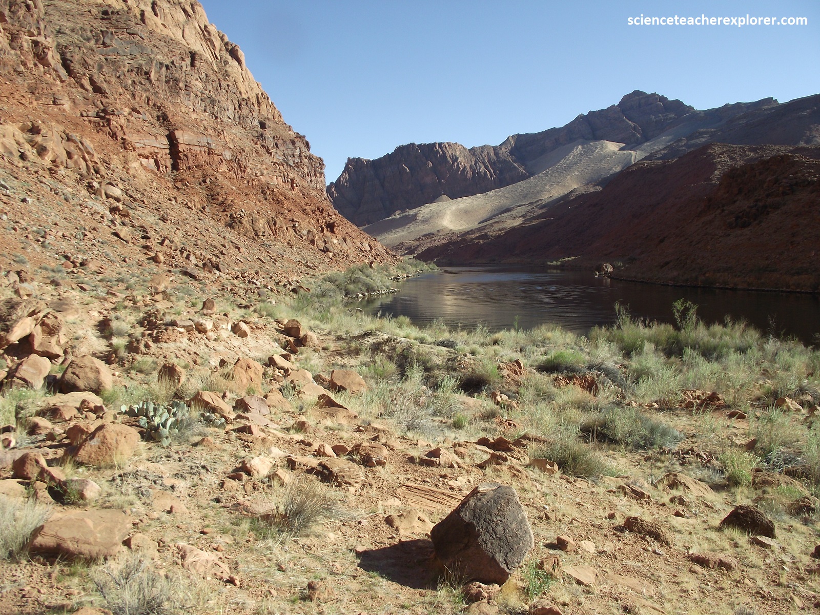 The historical crossing at Lee’s Ferry, was made possible because of the soft, easily eroded nature of rocks that allow direct access to the river. Geologically, Lee’s Ferry is the midpoint in the many layers of sedimentary rock that make up the Colorado Plateau, and it’s rocks mark a transitional time from shallow oceans to forested shorelines and streams, sandy deserts, and shallow lakes.