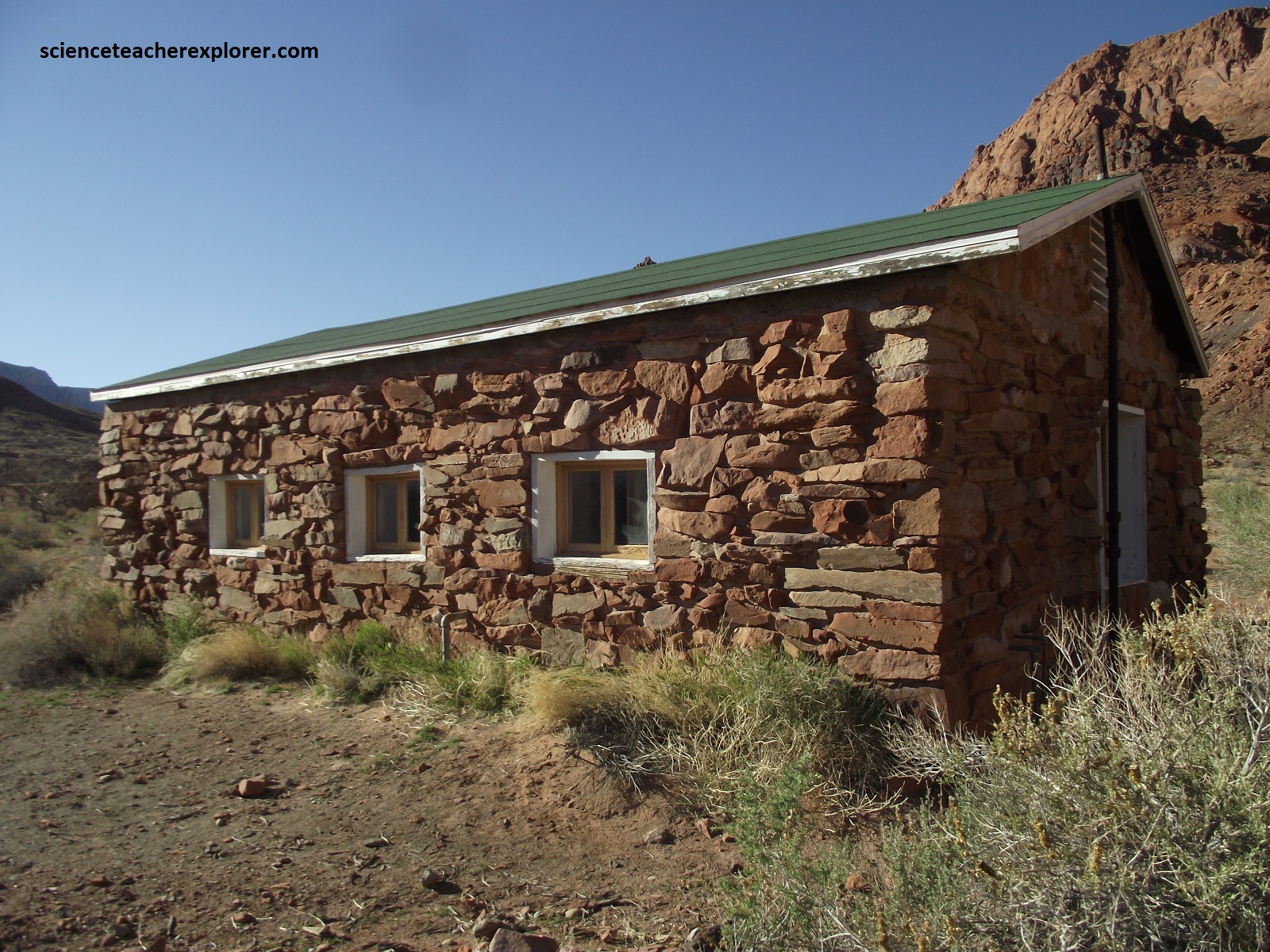 Pictured above, ferryman Jerry Johnson turned the last of Charles H. Spencer’s crew bunkhouses into a school in 1921-25. In 1947, the USGS remodeled it as a residence, then a silt laboratory.