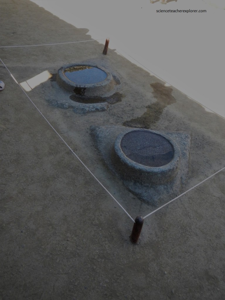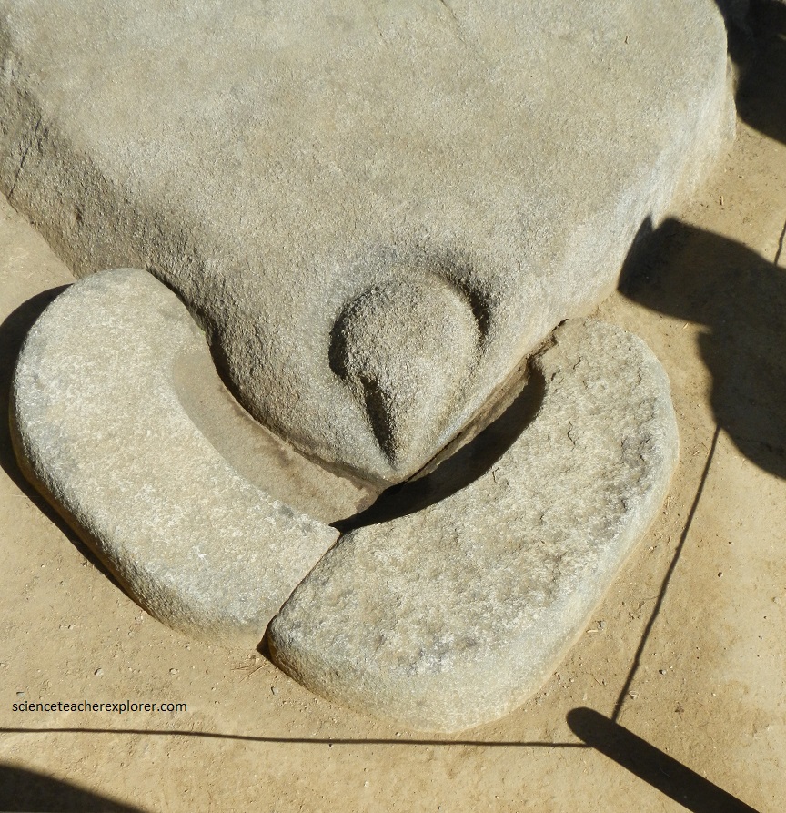 The symbolism of the slanted surface of Funerary Rock, the steps, and the ring carefully cut on one side is unknown, but we can admire the craftsmanship required it its creation, using only hammerstones, bronze tools, and sand. Notice that it is surrounded by round rive rocks, symbolically bringing the powerful and sacred river to this mountain site. The river rocks are now scattered and insignificant looking, but were ritually important at one time.
