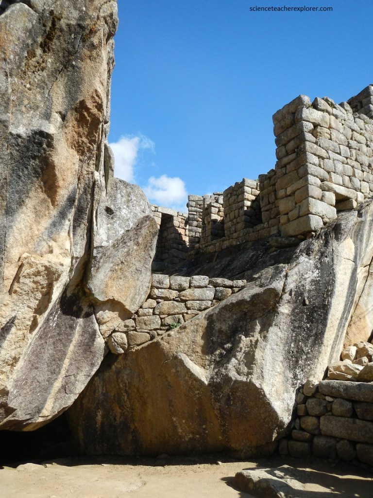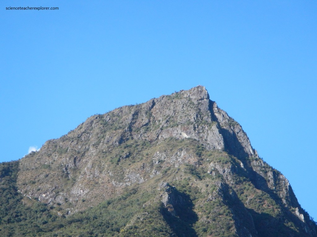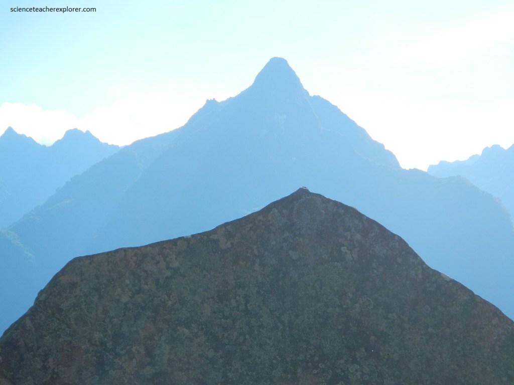 Pictured below, I’m posing near the Machu Picchu Guardhouse. Machu Picchu sits on a 150 square mile igneous intrusion, the Vilcabamba batholith, which is pushed its way into surrounding sedimentary rocks during the Permian era about 250 million years ago, and was gradually exposed during the periods of mountain building and erosion that followed. This created spectacular mountains and gorges, such as the Urumbamba Gorge below here.
