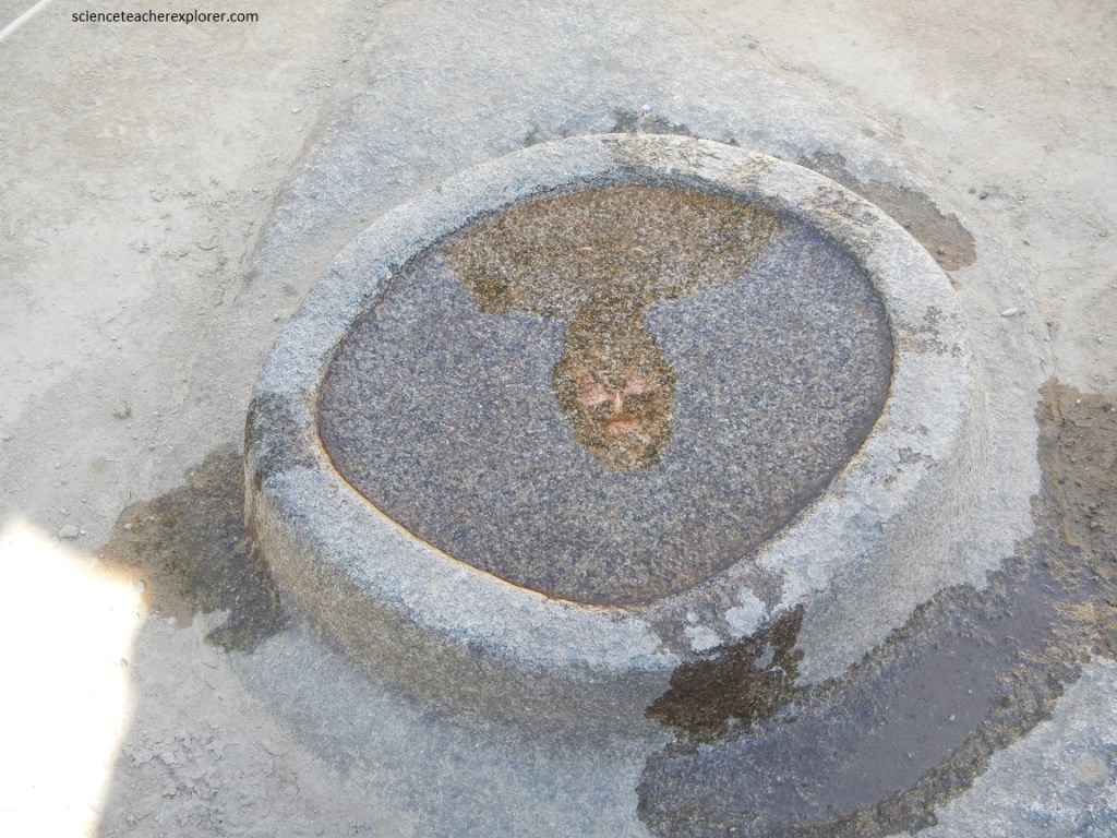 Pictured below, is the “Group of Mortars” found north of the “Temple of the Condor” and on the west side of the “Sacred Plaza”. “The Mortars”, (as in mortar and pestle for grinding grain), are carved in rocks on the floor of the building. The purpose and significance of the building and its stones are still being debated. Some have suggested an astronomical purpose because, when water is standing in the “mortars,” the sky is reflected there. This theory assumes the building had no roof. Apparently, the Inca’s were not supposed to look at the sky because this is where the gods were hanging out. This made astronomy a little difficult so they built these useful mirrors out of stone so they could look at the sky indirectly.