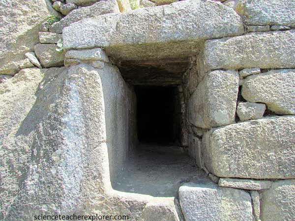Pictured above, I’m standing on a good view of the agricultural terraces and the qolqas to the south. There are hundreds of agricultural terraces at Machu Picchu, not only in the Upper and Lower Agricultural Sectors, but also on the flanks of the Intiwatana pyramid, on both the east and west flanks down to the Urubamba River, and even on the heights of Huayna Picchu. They were carefully constructed for agriculture, drainage, and to prevent erosion of the steep hillsides. Studies have shown that all these terraces combined would have provided the nutritional requirements for a permanent population of only about 55 people.