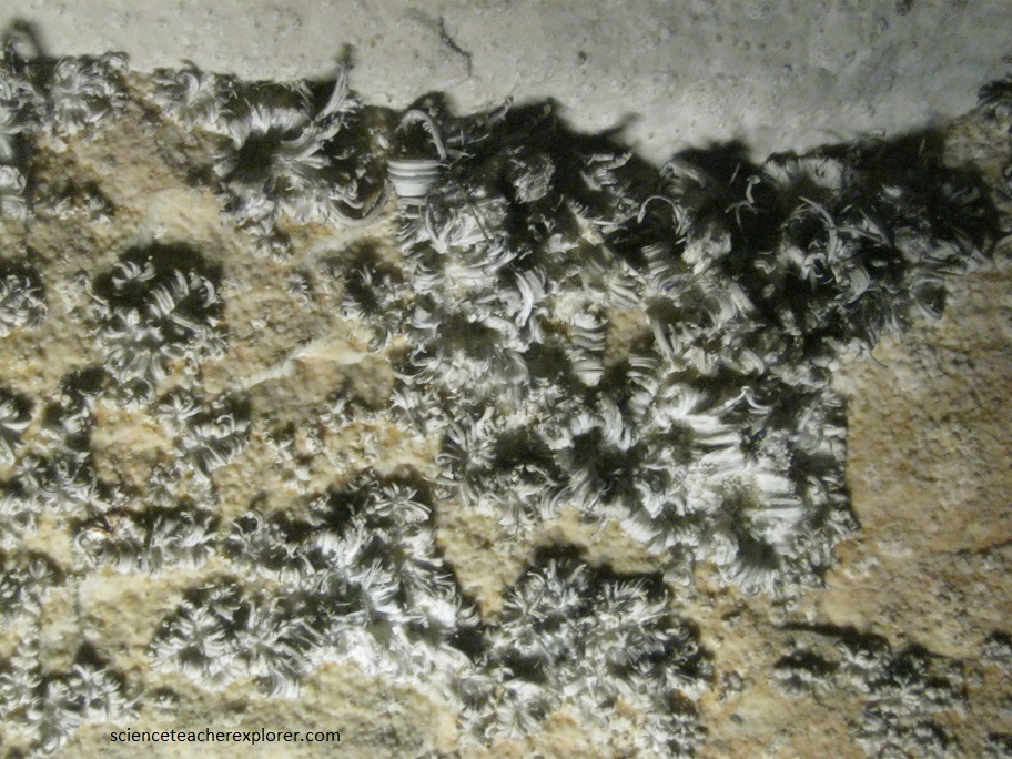 Dissolved minerals released from water seeping into the cave have created many fantastically shaped formations, which include some, resembling needles, pendants, flowers, and coils. (Pictured below)