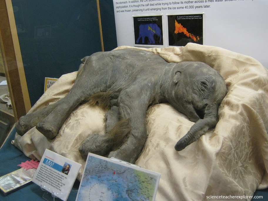 All mammoths in North America became extinct about 11,000 years ago. On Wrangel Island, in the Siberian Arctic Ocean, a population of wooly mammoths survived until 4000-3700 years ago. Pictured below, is an example of the remains of one them.