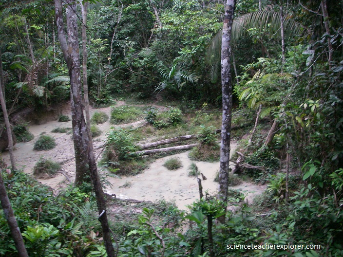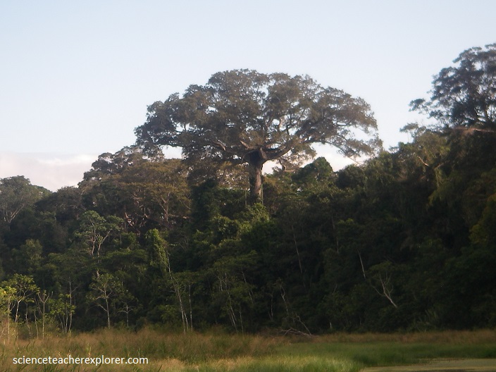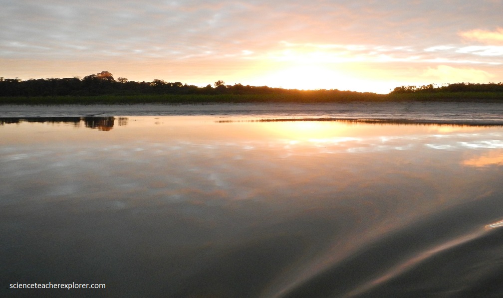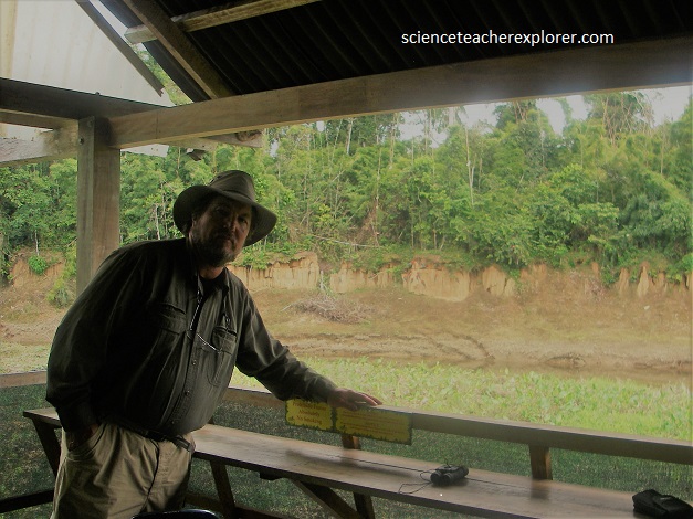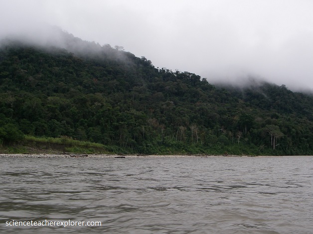 After spending the night at the Pantiacolla Lodge we caught a motorized long boat down the Rio Alto Madre de Dios at Santa Cruz village. Pictured above, we spent the night waiting for a Brazilian Tapir. Brazilian tapirs are mostly nocturnal, partly diurnal; and solitary. They have a very compact body-shape which helps it to penetrate dense vegetation. Even though we viewed one at night, I was unable to capture it with a reasonable photo. So that morning, I got the picture of the Tapir Salt Lick.