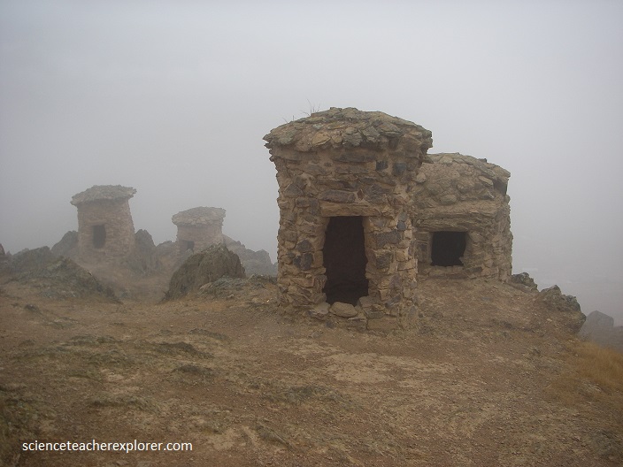 A chullpa is an ancient Aymara funerary tower constructed for a noble person. The Aymara are an indigenous ethnic group in the Andes and Altiplano regions of South America. They lived in the region for many centuries before becoming a subject people of the Inca. Chullpas are found across the Altiplano in Peru and Bolivia. This archaeological site contains 17 chullpas of 2.5 meters of height.
