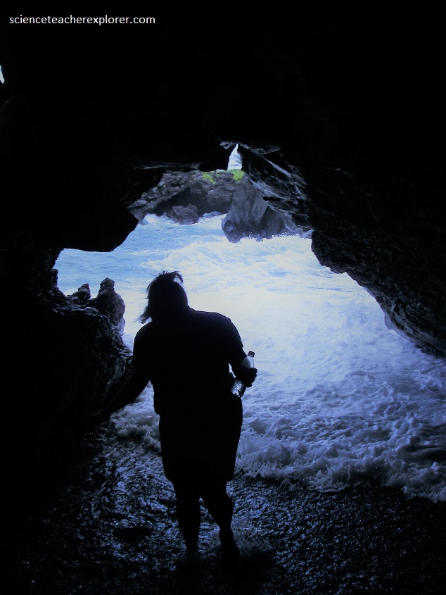 Pictured above, the beach was small with an ocean cave on the east side that we traveled through to the ocean. The cave was the scene of tragic legend that ended in Popo’alaea’s murder. She was the wife of Chief Ka’akea, of whom she ran away from due to his cruelty. She and her attendant hid in the cave until her reflection was seen by Ka’akea. Every spring, on the night of Ku, red shrimp cover the cave floors making it blood red. This marks the anniversary of Ka’akea’s bloody murder of his wife and friend.