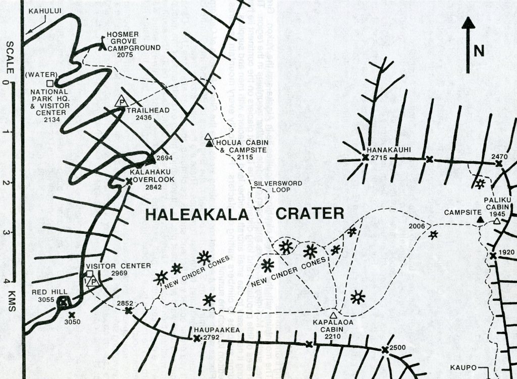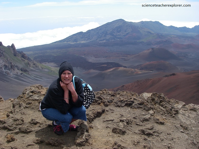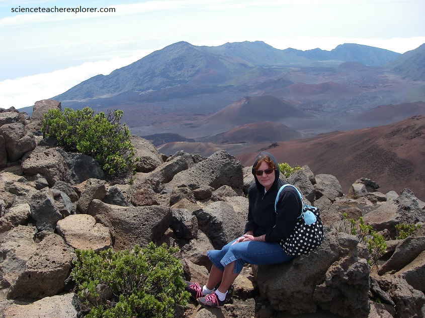 The Haleakala volcano was cool and studded with old cones traced with past flows of red, yellow, gray and black basalt, ash, and cinder cones.