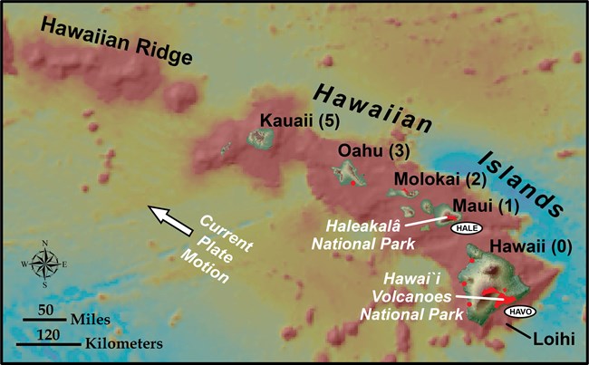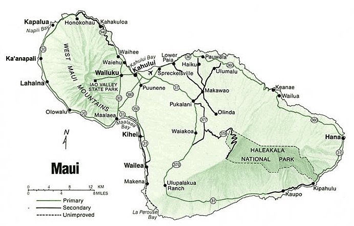 Deep beneath the Pacific Ocean, a part of the Earth is moving northwest. As it does, it is laying down volcanic hot spots, which act as open wounds going straight to the Earth’s core. Magma bleeds from these lesions, welling upward, where it eventually breaks the surface as volcanic islands. Along the Pacific Plate the process has developed a chain of islands from Hawaii toward Japan. One of the islands is Maui, (in the Hawaiian group), which began as two separate volcanoes that gradually merged together.