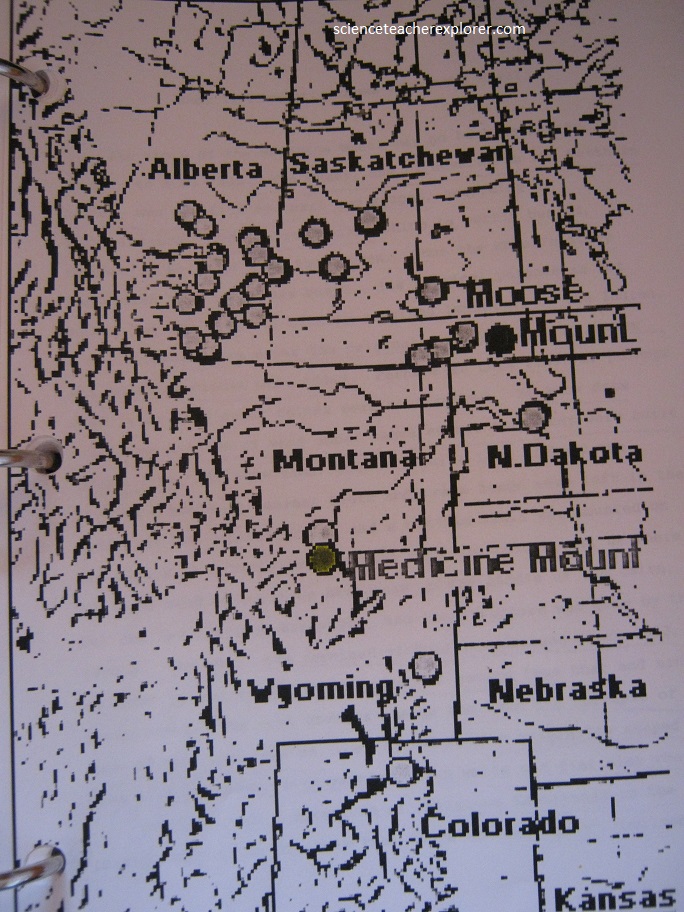 In 1974, an archaeoastronomer named Jack Eddy visited this Medicine Wheel and studied its alignments, that is, its arrangements of rocks, cairns, and spokes. He found the arrangements point to the rising and setting places of the Sun at summer solstice, as well as the rising places of Aldebaran in Taurus, Rigel in Orion, and Sirius in Canis Major — all bright, important stars associated with the Solstice. Later another astronomer, Jack Robinson, found a cairn pair that marked the bright star Fomalhaut’s rising point with the Sun 28 days before solstice.