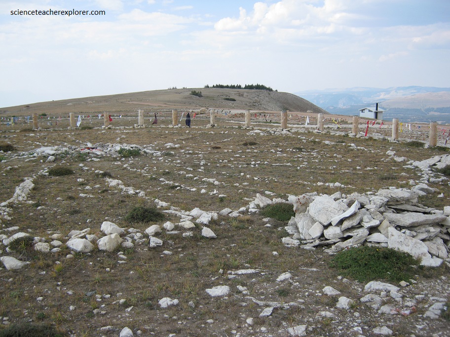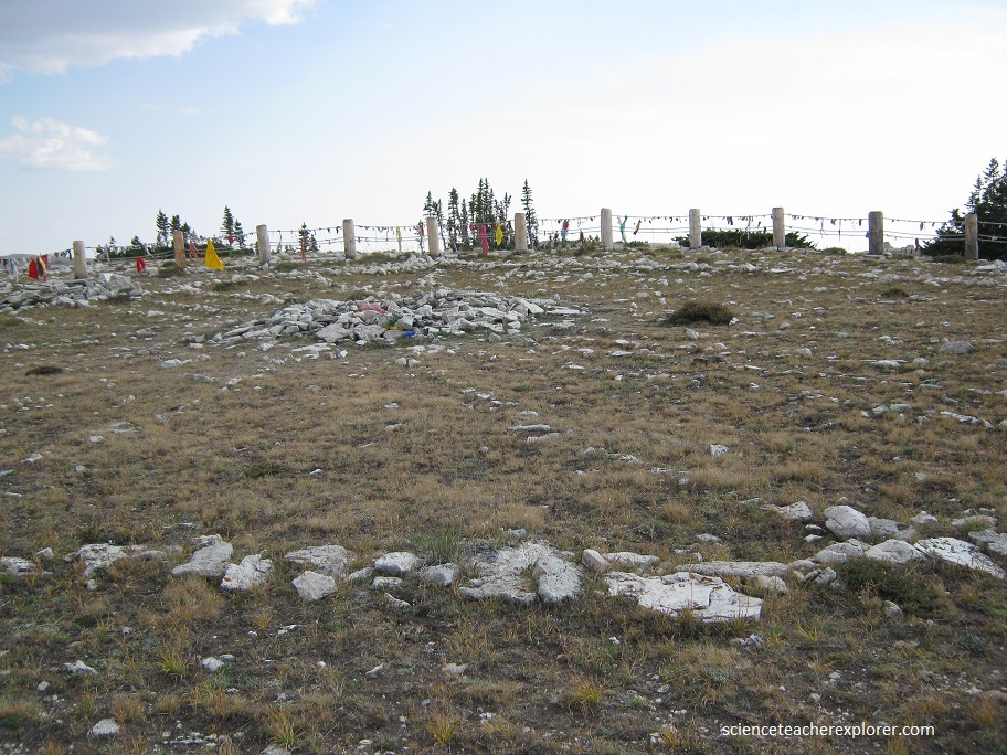 On June 21st of 2012, I visited the Medicine Wheel Mountain near the Wyoming/Montana border. It was/is located between Sheridan and Lovell, Wyoming on Wyoming Highway 14A. There was a designated parking area at the beginning of the trail to “The Medicine Wheel”. It was necessary to walk about 2 km from the parking area to the Medicine Wheel Historic Landmark.