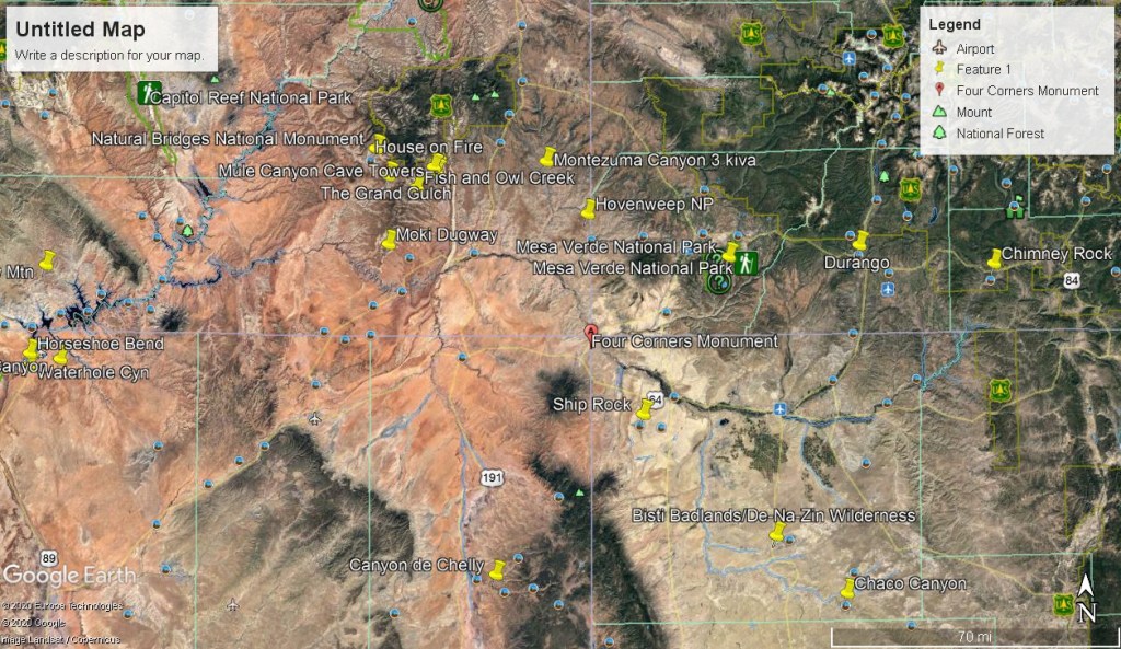 East of Cortez on U.S. 160, the escarpment of the Mesa Verde rises like the prow of a huge ship where the road into the park snakes upward from the east edge of the Montezuma Valley. Mesa Verde National Park makes up a relatively small portion of the northeast corner of the mesa. Becky (my wife) and I visited Mesa Verde National Park in October of 2011.