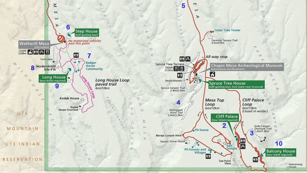 Spruce Tree House across from the museum at Mesa Verde National Park contains 114 rooms and 8 kivas, (pictured below).