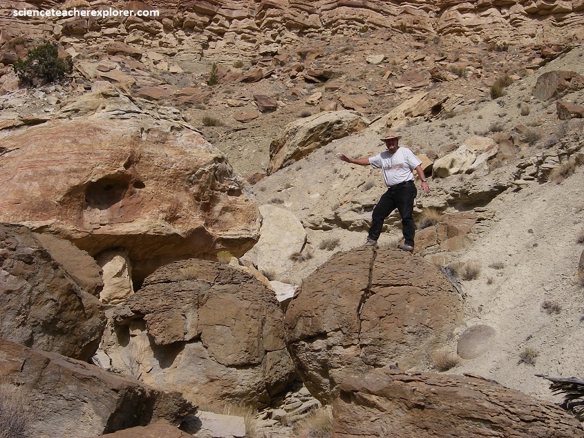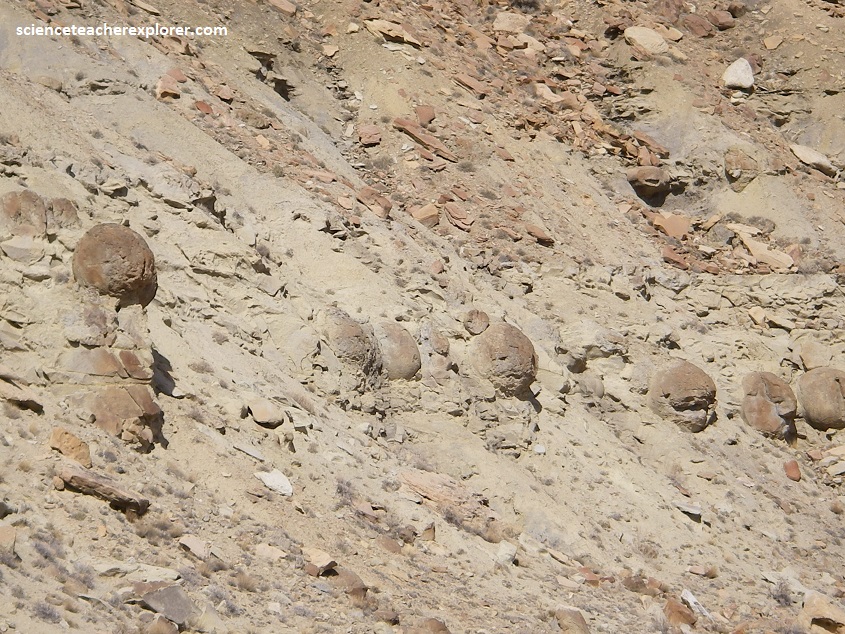 Most of these concretions are in a sandy layer of the Tununk Shale Member of the Mancos Shale Formation.