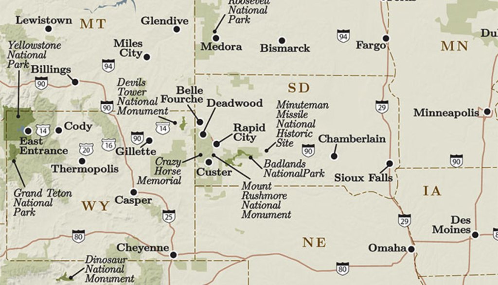 Mount Rushmore National Memorial is a large-scale mountain sculpture by artist Gutzon Borglum. The figures of America’s most prominent U.S. presidents–George Washington, Thomas Jefferson, Abraham Lincoln, and Theodore Roosevelt—represent 150 years of American history, (pictured below).
