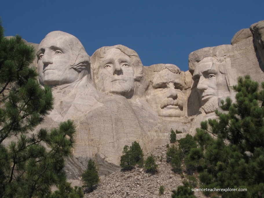 Mount Rushmore is largely composed of granite. The memorial is carved on the northwest margin of the Black Elk Peak granite batholith in the Black Hills of South Dakota, so the geologic formations of the heart of the Black Hills region are also evident at Mount Rushmore. The batholith magma intruded into the pre-existing mica schist rocks during the Proterozoic, 1.6 billion years ago. The Black Hills area was uplifted as an elongated geologic dome during the Laramide orogeny around 70 million years ago. Subsequent erosion stripped the granite of the overlying sediments and the softer adjacent schist leaving a granite mountain behind.