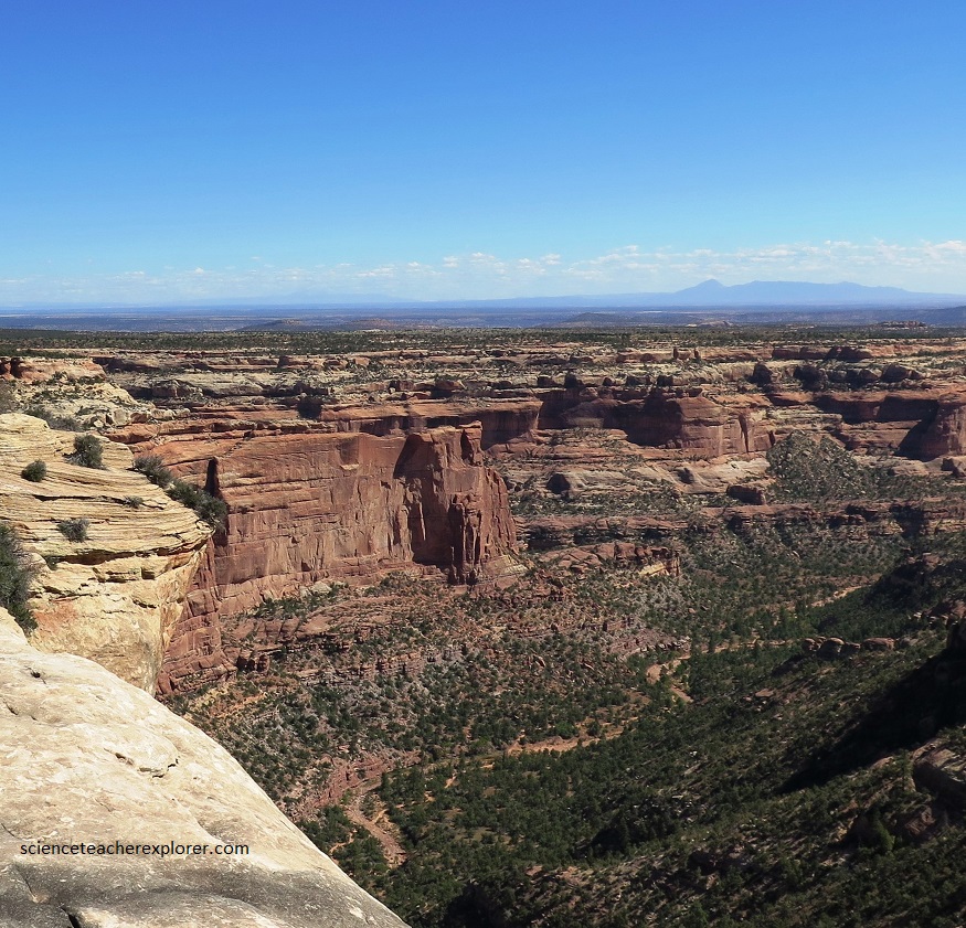 Pictured above, Arch & Texas Canyon is a canyon of radiant color. In the hills above the canyon, pale greens mingle with gray and white. The canyon bottoms glow with the red of the setting sun. Much color in canyon country derives from the presence of iron in different combinations with oxygen. Oxygen rusted the iron a brilliant orange-red. Without enough oxygen, iron turns green. When iron combines with both hydrogen and oxygen, it becomes yellow-orange limonite. Above the multi-colored valley, the Cedar Mesa Sandstone appears startlingly white. The ancient sea’s waves washed nearly all of the darker minerals away, leaving only white quartz sands behind, (imaged above).