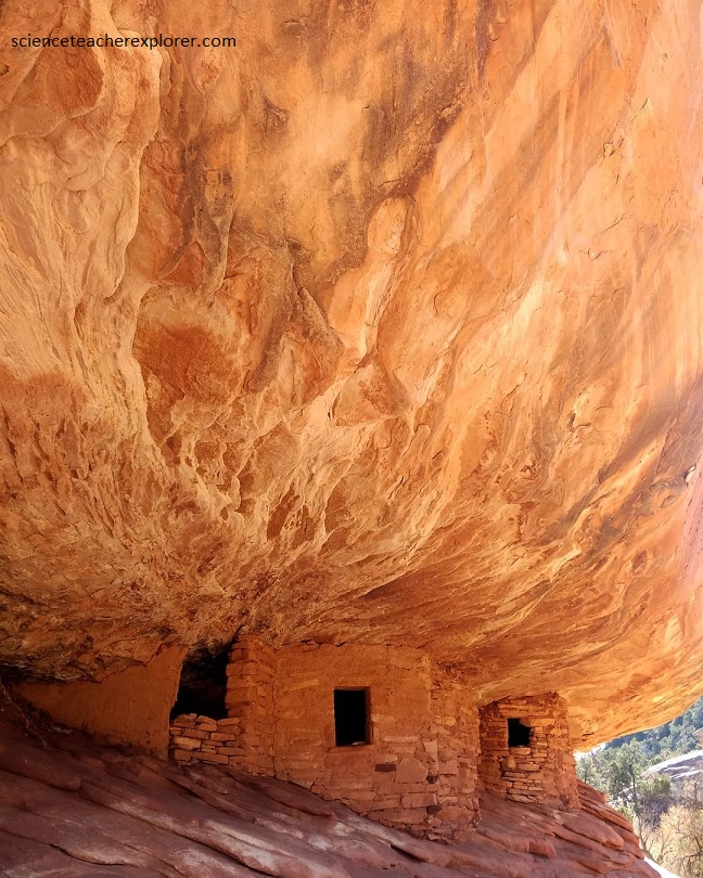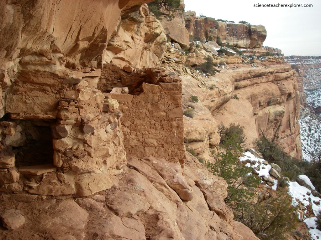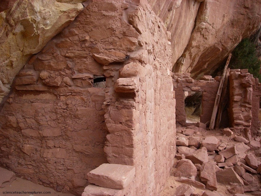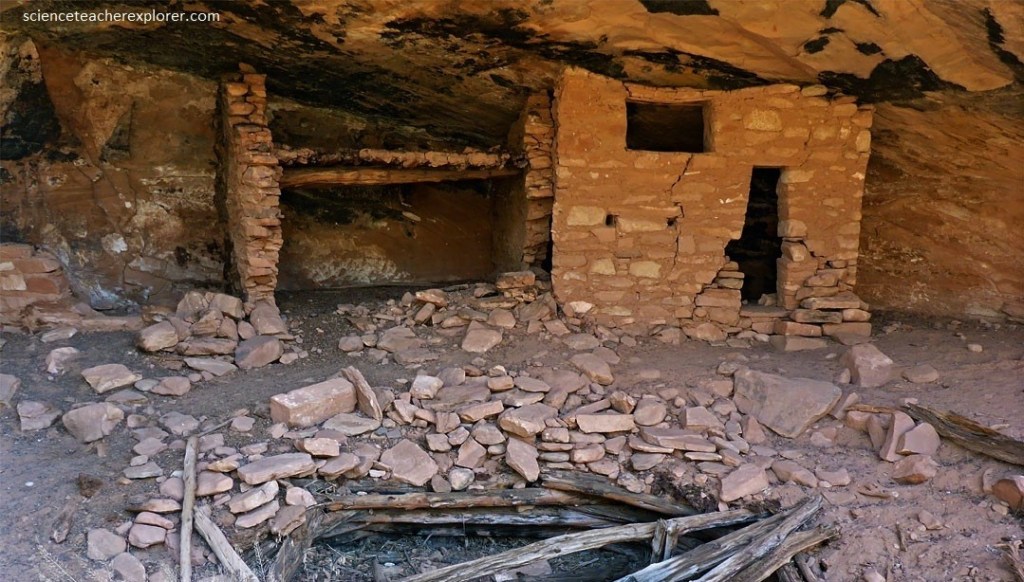 Pictured below, these Ancient Pueblo ruins had two rooms with a door. The word “Anasazi” has popularly come to mean ‘ancient ones’ but is considered by some to be a racist term. The word itself is Navajo, meaning “enemy ancestors.” Using the term Ancient Pueblo or Ancestral Pueblo is also problematical. Such usage obscures the observation that the Mogollon tradition is also considered to be ancestral to Pueblo peoples. Most archaeologists are tradition bound and continue to use the term Anasazi, which is prominent in their professional literature.