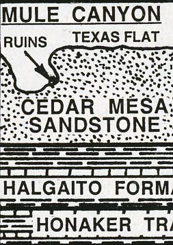 Of course, another leg of our tour in 2001, was to explore the towers in the Lower Mule or Cave Canyon. There are several towers in various states of decay located on the left (east) and right (west) sides of the rim of “Lower Mule or Cave Canyon. Much of the first story of one of the towers on the east rim is in very good shape. On the west rim a partial wall with a doorway remains. The other towers are basically piles of rubble. However, these structures rise straight from the bedrock and the walls were built from shaped and unshaped sandstone blocks and slabs.