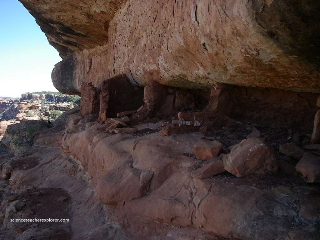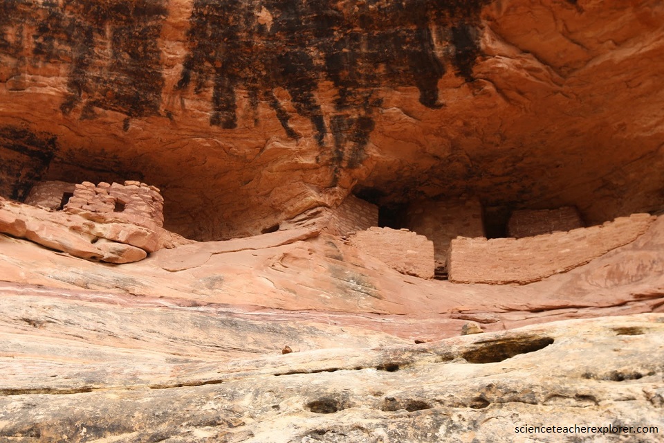 After visiting the spring, we hiked east to view additional ruins tucked in alcoves and located beneath overhangs along the cliffs on the east/northeast canyon wall.