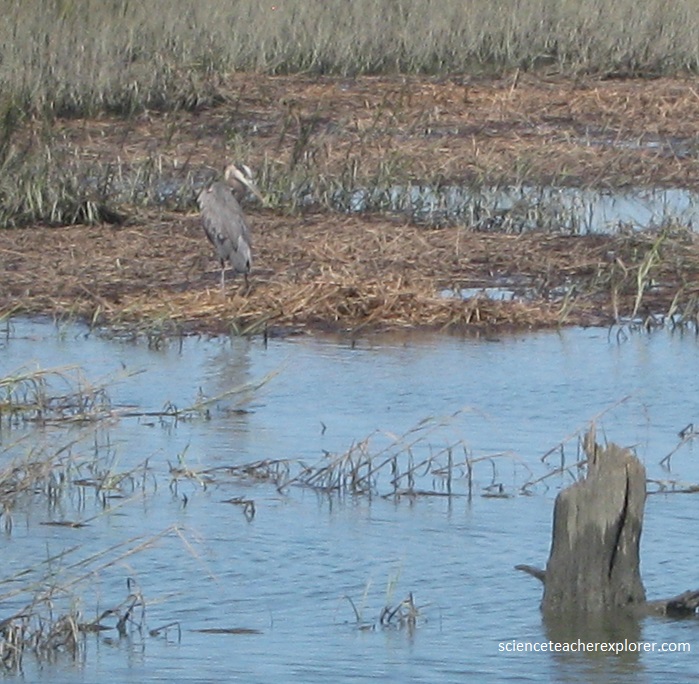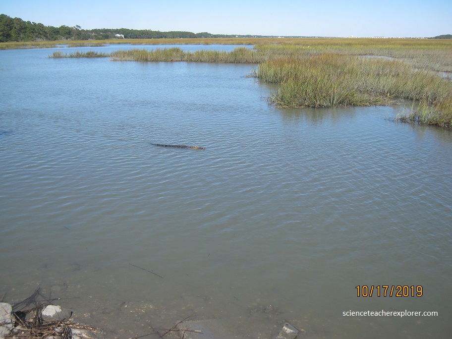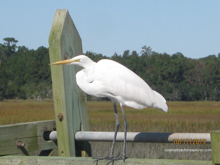 Becky and I, started exploring the area with a walk along the semi-freshwater pond that we passed on our drive in. There we saw indigenous wildlife. Pictured above, on the opposite side is a salt marsh that ebbs and flows with the ocean tides filled with oysters, fish, birds, alligators and wildlife.