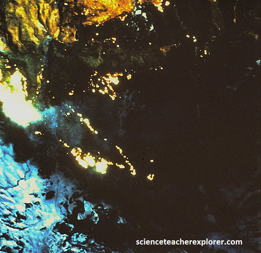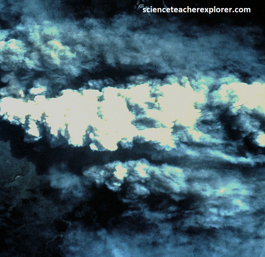 The Antarctic ozone hole is and area of seasonal ozone depltion in the stratosphere above the Antarctica, primarily occurring during the Antarctic spring (August-November). It’s not a literal hole, but rather a thinning of the ozone layer, allowing more harmful ultraviolet (UV) radiation to reach the surface rather than absorbing it and can be detected with the use of Infrared images. However, in the early 1980s, through a combination of ground-based and satellite measurements, scientists began to realize that Earth’s natural sunscreen was thinning dramatically over the entire earth and the Ozone Hole increasing in size was a warning that something was wrong. It was later concluded that man-made CFCs were the culprit and a international ban was implemented. {Images below were provided by Timothy L. Williams, NASA research pilot of the Ames Research Center for educational purposes in 1996}.