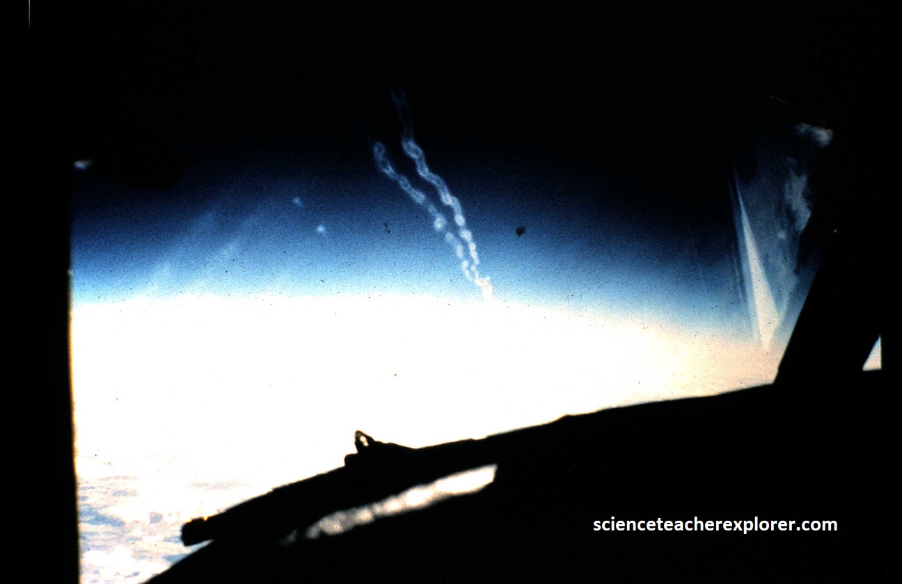 Another, investigation the NASA ER-2 was involved in was the measurement of the increase of contrails worldwide (pictured above). Contrails, or condensation trails, are the white streaks often seen behind airplanes, and they can contribute to global warming. These trails form when the water vapor on the surface of an aircraft or it’s exhaust condenses and freezes into ice crystals in the cold, humid air at high altitudes. While contrails are not directly a pollution in the traditional sense, they do affect the Earth’s climate by altering the amount of sunlight reaching the surface and by trapping heat & adding to global warming. {Images below were provided by Timothy L. Williams, NASA research pilot of the Ames Research Center for educational purposes in 1996}.