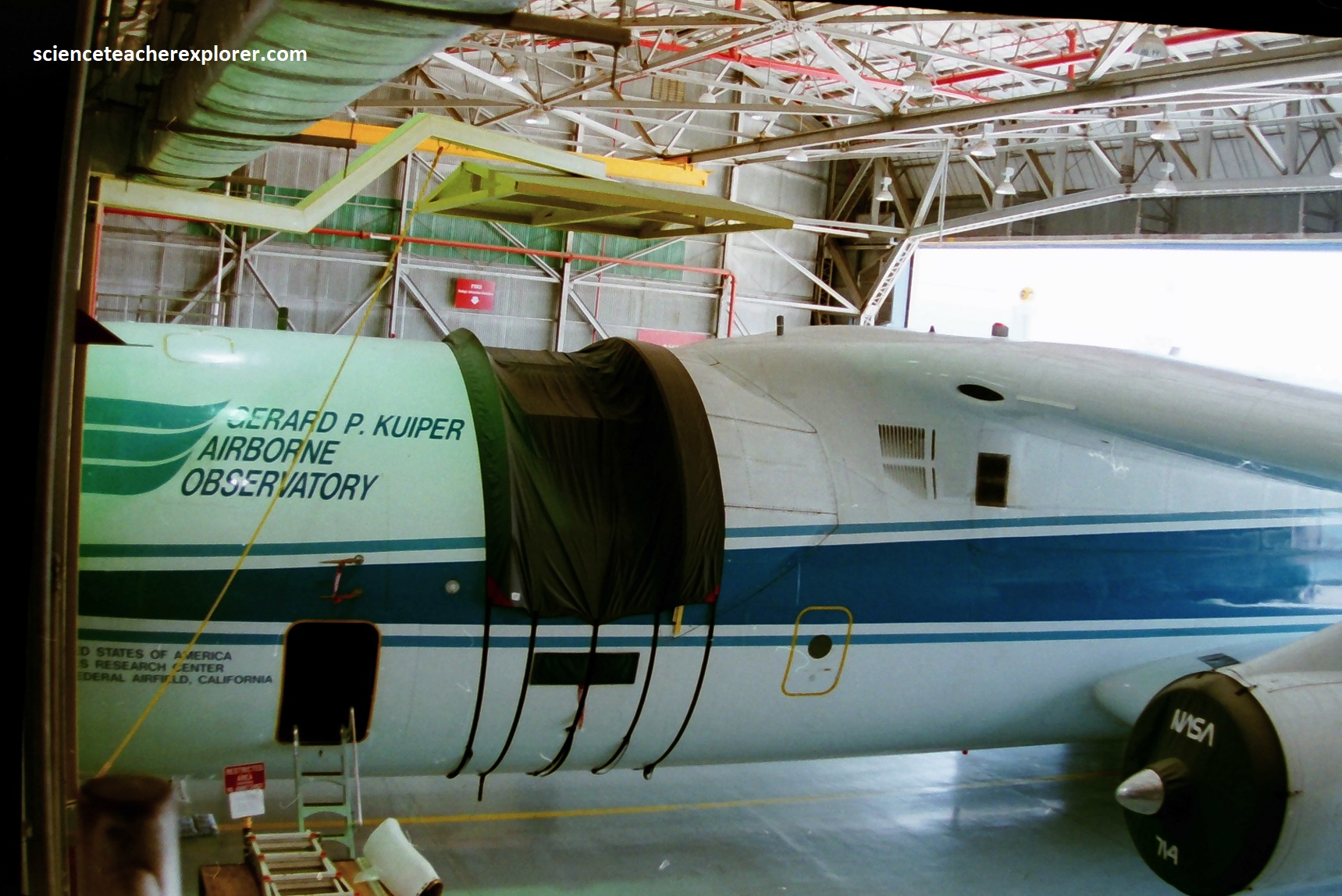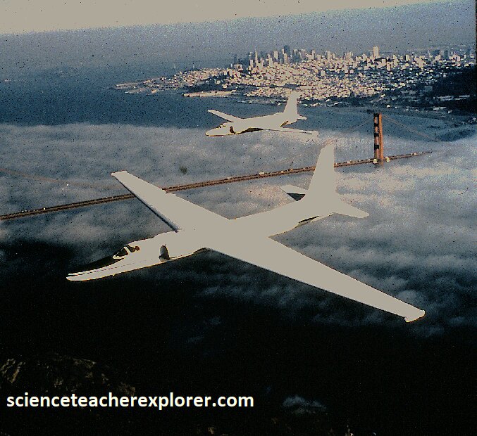 Within the Moffett Hangers, I met a NASA-pilot named Tim Williams. I then spent several days working with him for teaching-resources. Timothy L. Williams was a research test pilot at NASA’s Armstrong Flight Research Center in Edwards, California. He flew airborne science and test aircraft and was a team member on test programs, supporting mission planning, procedures and safety-related operational elements. Additionally, he was the project pilot for NASA’s ER-2 high-altitude science aircraft and the C-130 environmental science research aircraft missions. He had provided me with most of the photos below. {Images below were provided by Timothy L. Williams, NASA research pilot of the Ames Research Center for educational purposes in 1996}.