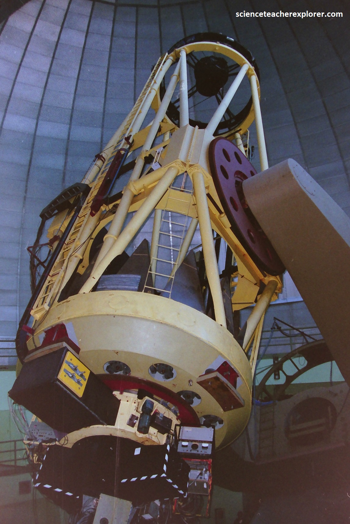 Another notable visit/tour that I made, was to the “Lick Observatory 1996”. The Lick Observatory was/is an astronomical observatory owned and operated by the University of California. Pictured above, it is on the summit of Mount Hamilton, in the Diablo Mountain Range just east of San Jose, California. Our group’s focus was on the C. Donald Shane telescope, (3.05m reflecting telescope). Pictured above, it was noted for having three foci, prime focus, Cassegrain focus, and coudé focus. After several decades of use, it was also fitted with an early adaptive optics system. The Shane telescope was the largest and most powerful telescope at the Lick Observatory in 1996, and was the second-largest optical telescope in the world when it was commissioned in 1959.