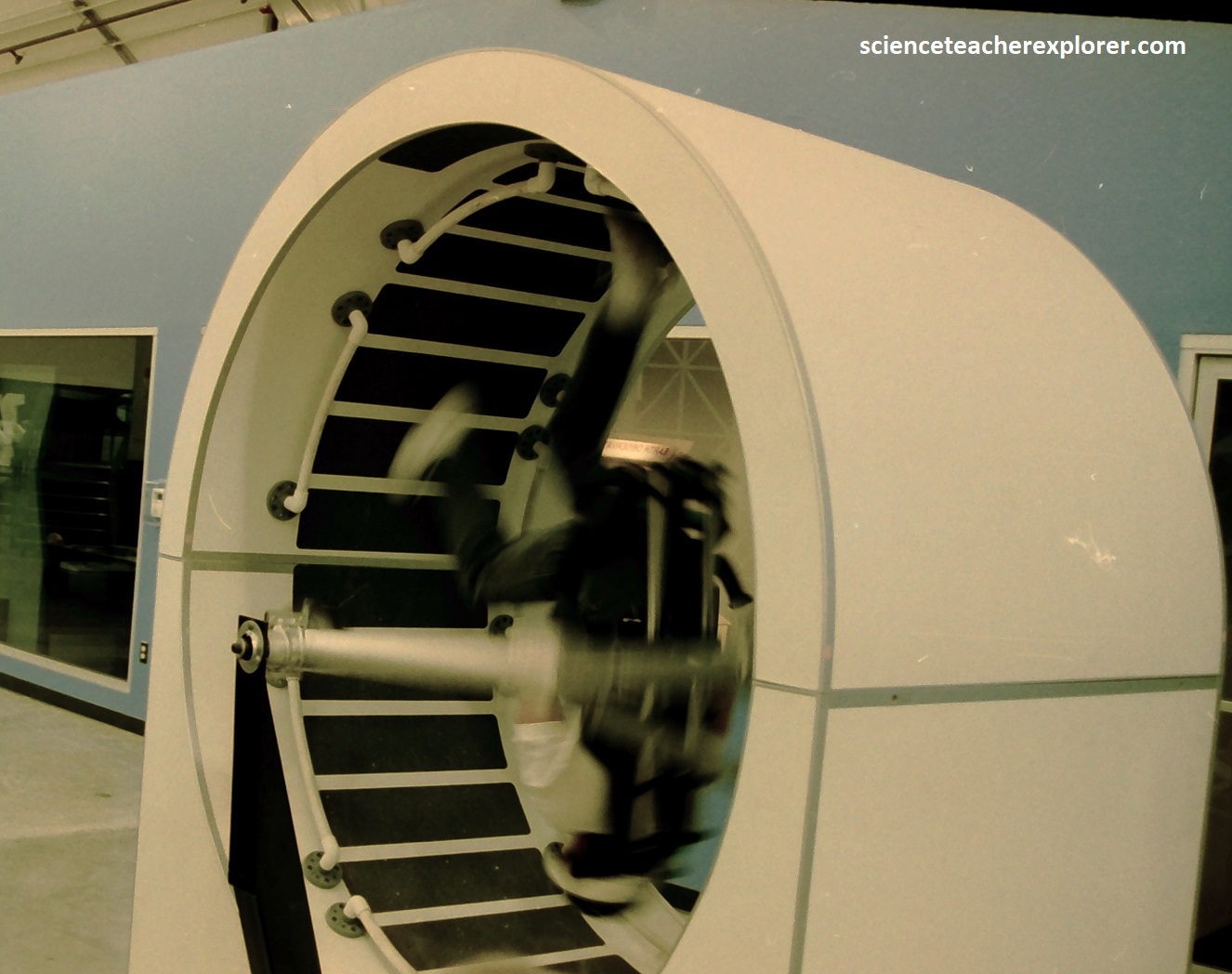 Pictured below is a g-force centrifuge simulator. This rotating machine creates artificial g-forces by rapidly accelerating and decelerating the rider. NASA uses centrifuges to train astronauts for the g-forces experienced during launch and reentry.