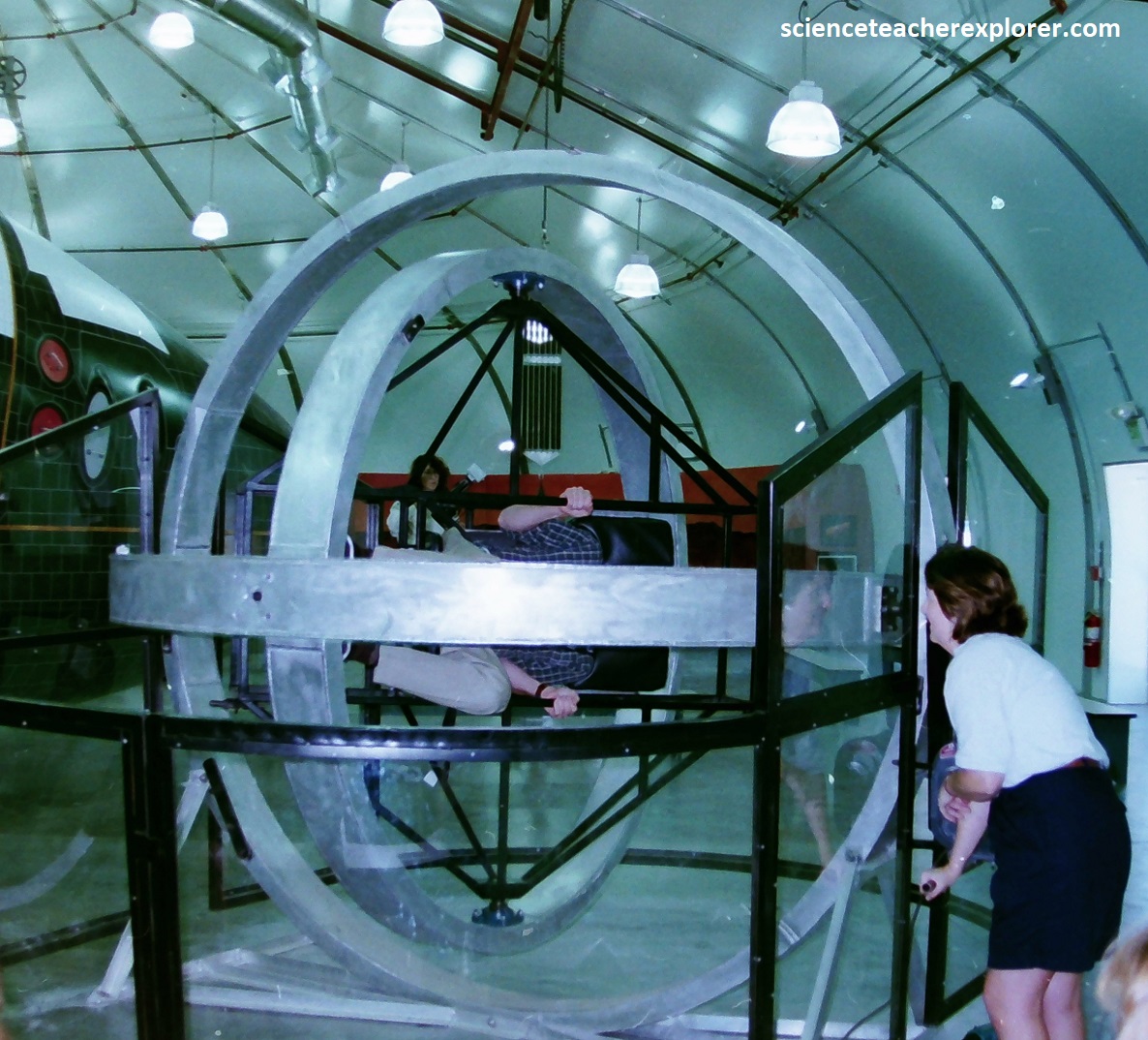 My next tour was in the NASA Ames Exploration Center where I got the opportunity to do research in the science museum and education center. Additionally, there were displays and interactive exhibits to play with and NASA technology, missions and space explorations to learn about in 1996. {Note: I’m in the massive gyroscope pictured below}.