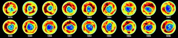 As mentioned, Mr. Williams was a NASA pilot that flew the ER-2 for high-altitude research-missions. The NASA ER-2 was converted from a CIA E-2 in the 1980s, (Pictured & imaged above). One of the first missions for NASA it accomplished; was to investigate the infamous ozone-hole over the Antarctica and collect data using Infrared images, (imaged below). {Images below of the Ozone Hole were provided by Timothy L. Williams, NASA research pilot of the Ames Research Center for educational purposes in 1996}. (Note the progression of size of the hole from 1979 to 1996).
